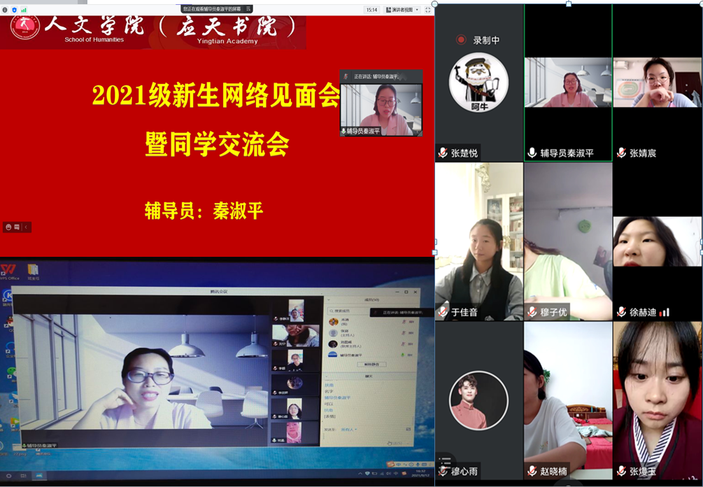 为了加强同学们相互认识和了解,充分做好网课准备,9月11-12日,Beat365官方网站各班级分别召开了2021级新生网上见面会暨同学交流会,参加会议的有各班级班主任老师、高年级优秀学长邱骞、刘晨威、徐新雨、姚文琦、张楚悦等,会议由辅导员秦淑平老师主持。