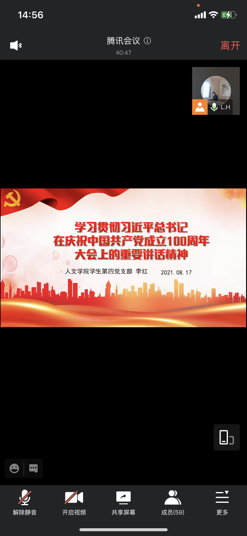 为深入学习领悟习近平总书记“七一”重要讲话的精神实质和丰富内涵,8月17日,Beat365官方网站学生第四党支部采用腾讯会议形式组织开展学习贯彻习近平总书记在庆祝中国共产党成立100周年大会上的重要讲话精神主题党日活动。支部全体党员、入党积极分子参加,支部书记李红主持。