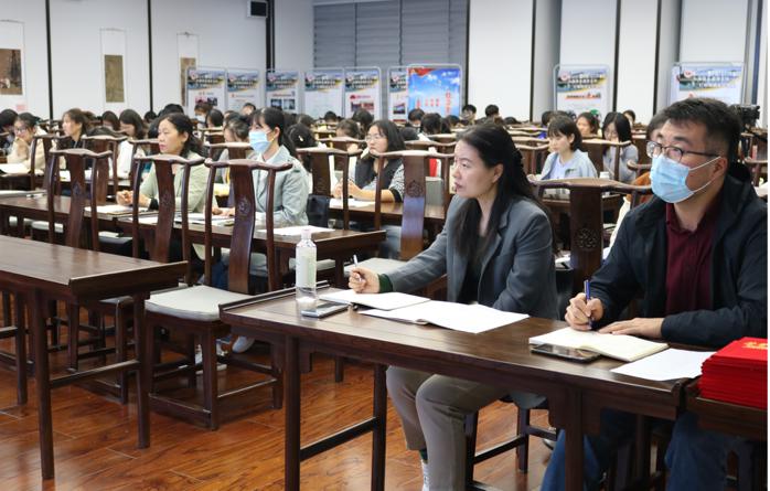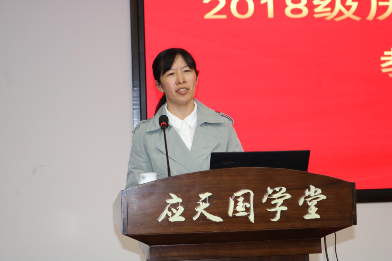 最后,薛立芳从责任与投入、自信与热爱以及《周易》坎卦三个方面对本次汇报做了总结。她希望同学们能够明白身上肩负的使命,树立自信心,在教学中展现自己的风采,并鼓励同学们在遇到挫折时,能够“常德行,习教事”。