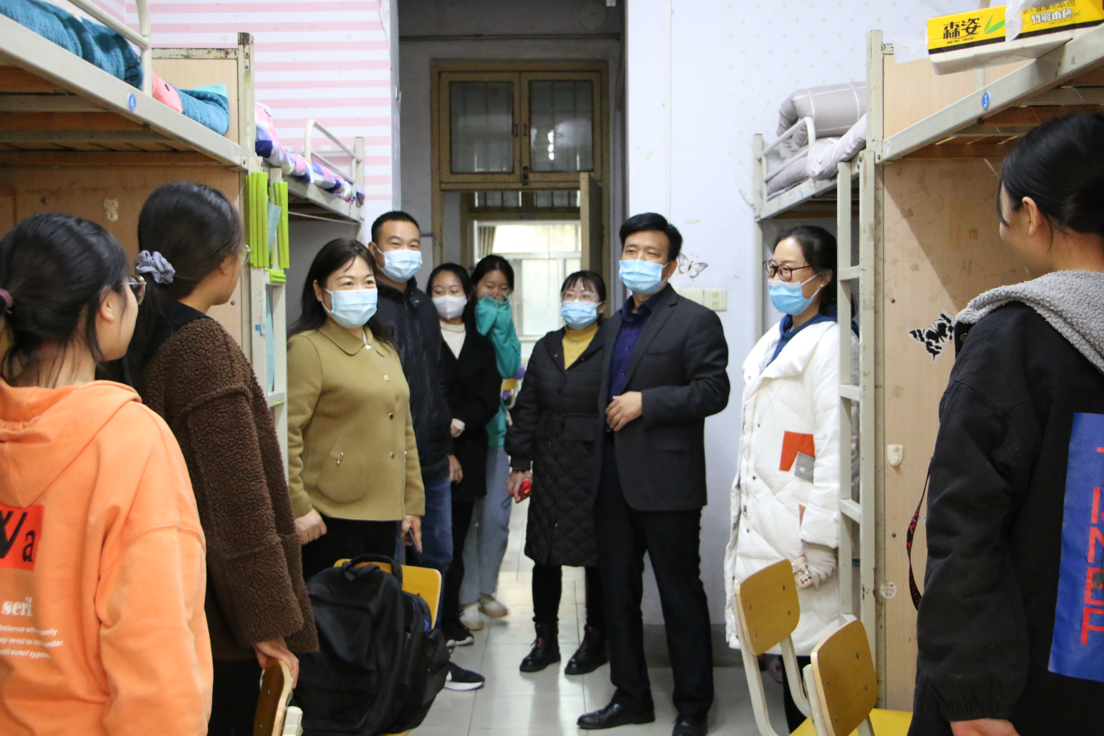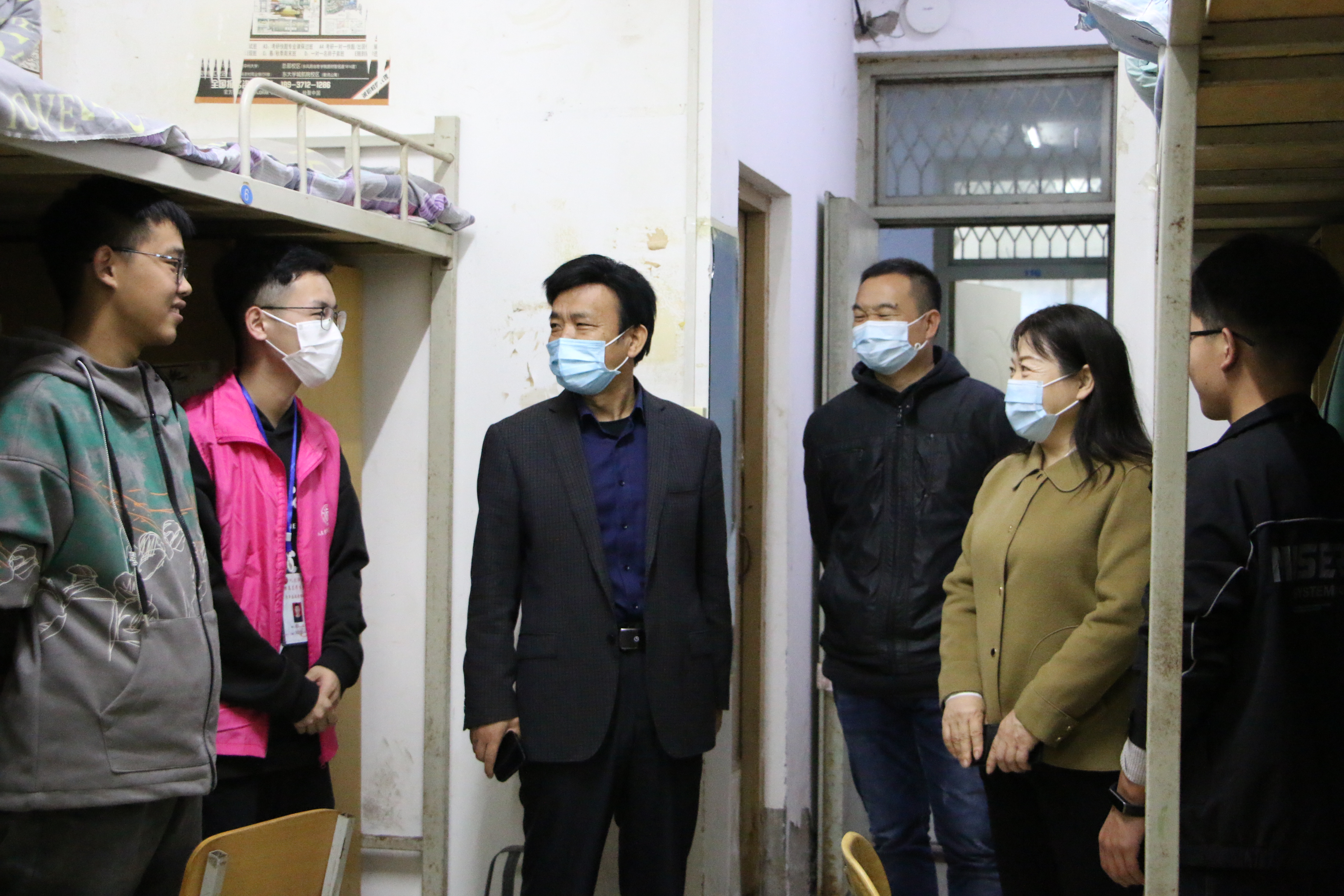 为了帮助新生更好地适应学校生活,同时了解新生的入校生活状况,2021年10月16日下午17时,Beat365官方网站党委书记陈晓明、院长高建立、党委副书记卢忠雷,以及21级新生辅导员秦淑平、乔明亲临学生宿舍慰问新生。