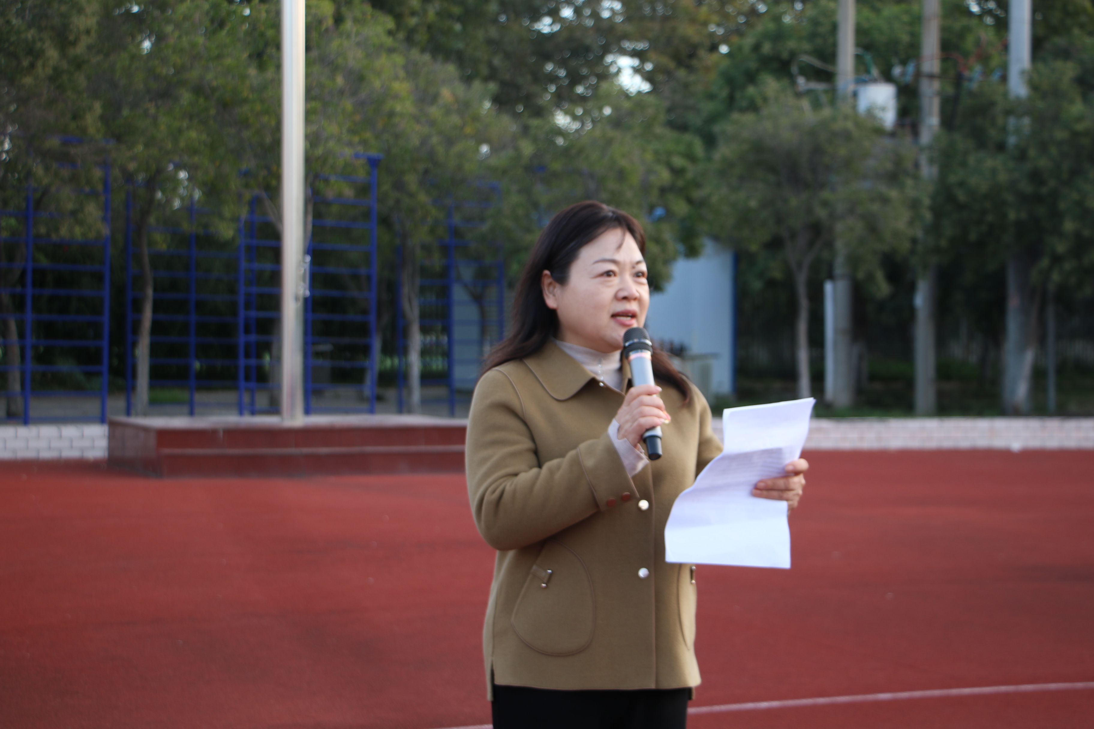 升旗结束后,陈晓明为师生上了主题为“学党史、坚定信念,跟党走、筑梦起航”的微党课,要求全体师生要以党史学习教育为契机,听党话、跟党走,从百年党史中汲取成长营养,读懂初心,牢记使命,不断厚植爱党、爱国、爱社会主义的情怀。让红色基因,革命薪火代代传承。切实用党的奋斗历程和伟大成就鼓舞斗志、明确方向,用党的光荣传统和优良作风坚定信念、凝聚力量。