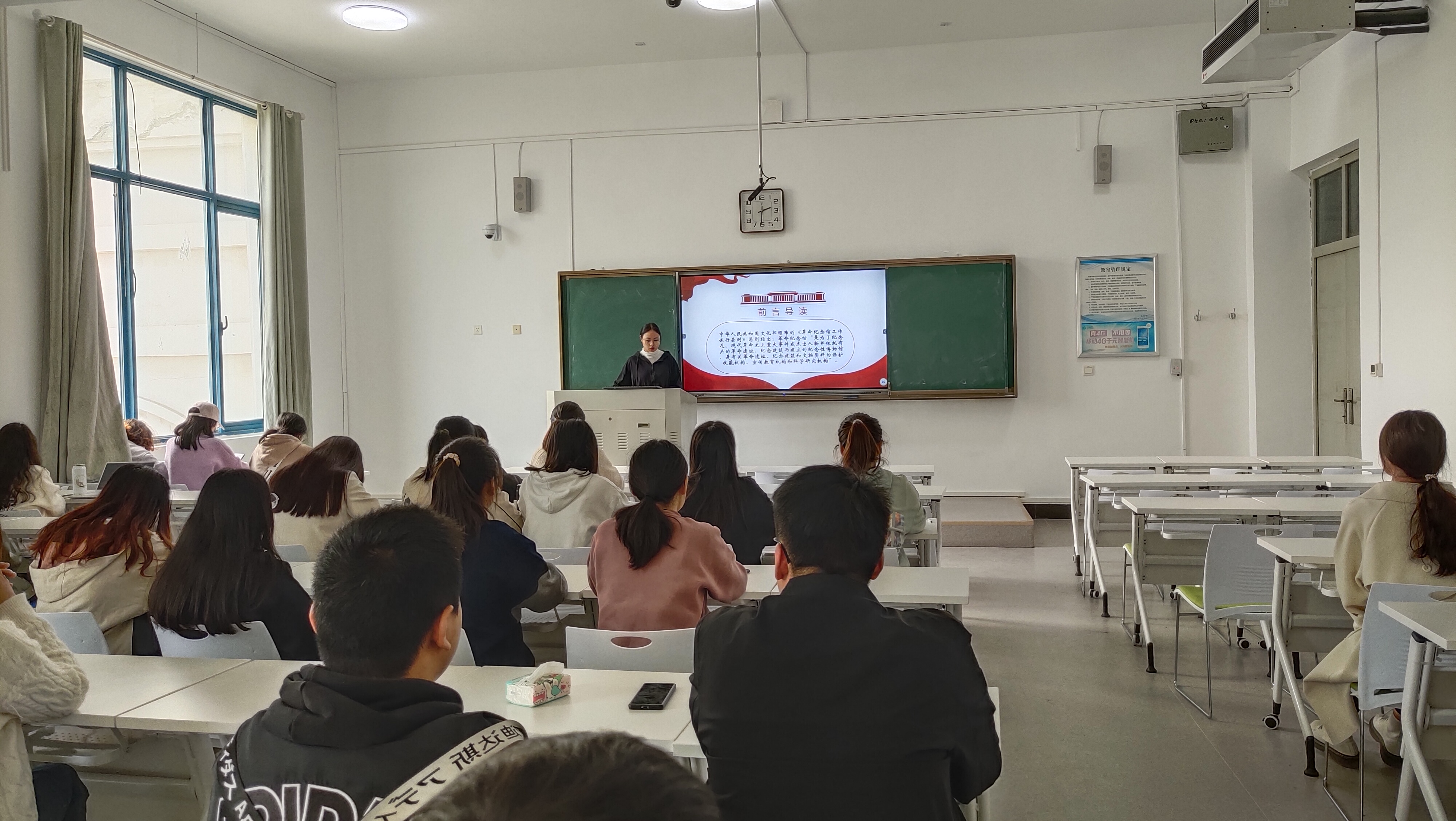 活动伊始,文化产业管理2班团支书徐新雨给同学简单讲解了《革命纪念馆工作试行条例》。接着团支书对素有“小延安”的竹沟进行了详细的介绍,同时还通过观看视频的方式带领同学参观了竹沟纪念馆。最后,团支书一一介绍了竹沟的革命先烈们,让同学们了解了老一辈无产阶级革命家的英勇事迹。