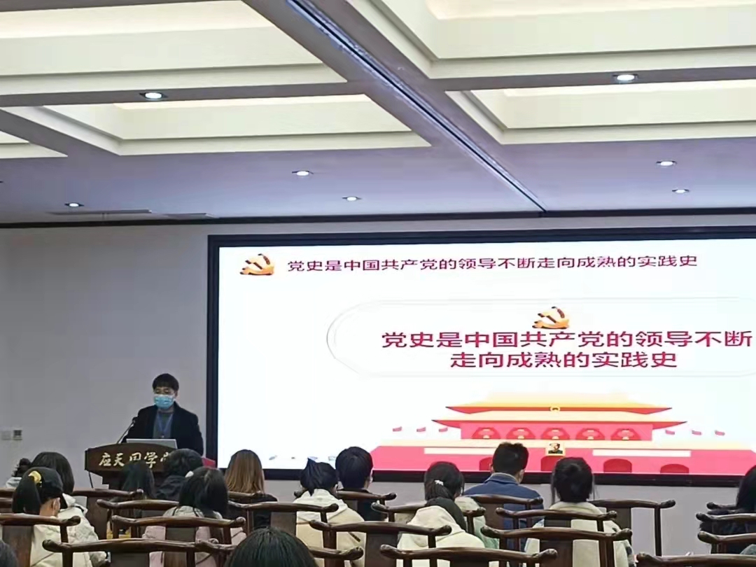 会议伊始,刘晨威对四史内容进行简单介绍。随后,他从“党史是中国共产党不断走向成熟的实践史”、“新中国史是中国共产党推进建设新中国的实践史”、“改革开放史是中国共产党推进社会主义制度自我完善和发展的实践史”、“中国共产党是引领世界社会主義发展的重要政治力量”四个方面进行详细介绍,使同学们充分了解中国社会发展历程,加强了思想认同。最后,刘晨威向参会人员发出倡议,希望同学们坚定理想信念,牢记初心与使命,提升自身道德修养和工作能力。
