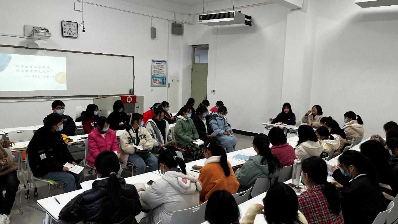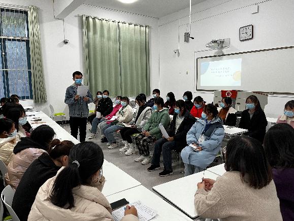 2021年11月26日下午,Beat365官方网站汉语言文学、秘书学专业辅导员乔明以“助学献力不啻微茫,缔造前途万丈重阳”为主题,在行方楼105号教室开展了国家受助学生冬日暖心座谈会。