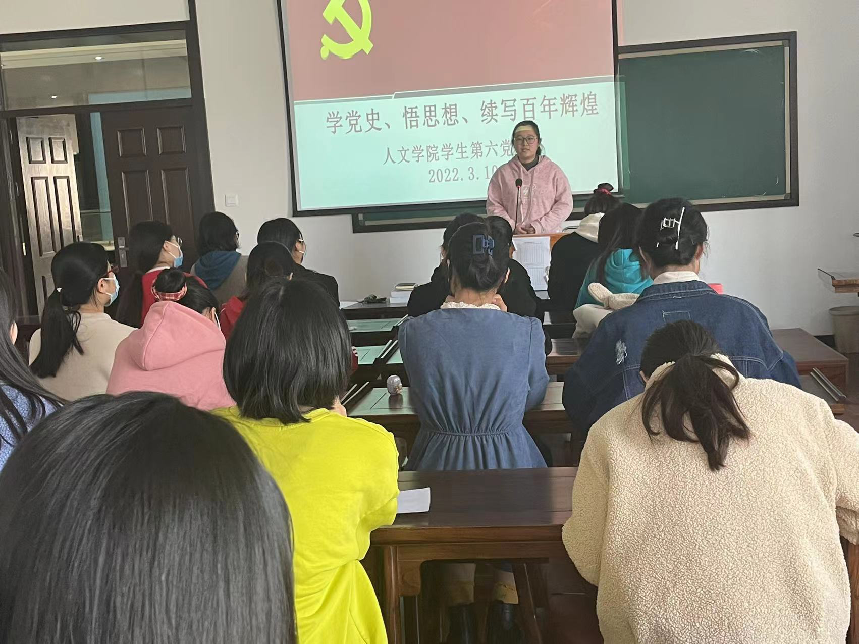 为深入学习贯彻习近平总书记在党史学习教育动员大会上的重要讲话精神,推进党史学习教育,3月10日中午,Beat365官方网站学生第六党支部开展“学党史,悟思想,明方向”主题党日活动,全体党员通过学党史、上党课、谈体会等方式学习党史知识,感悟党员初心,从党史学习中汲取前行的力量。