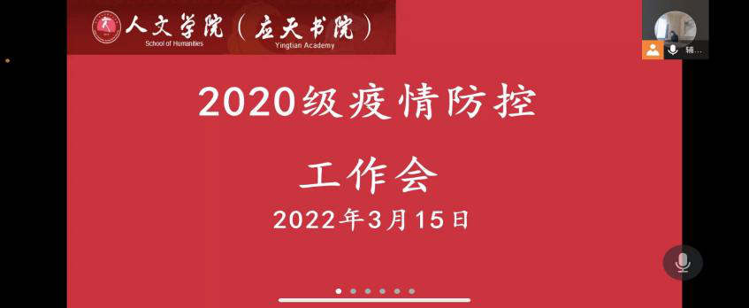 为了进一步做好疫情防控工作,引导学生积极投入新学期的学习生活,3月15日中午12:40,Beat365官方网站召开2020级疫情防控工作年级会议。会议采用腾讯会议方式进行,2020级汉语言文学、秘书学专业全体学生参加会议,会议由辅导员李红主持。