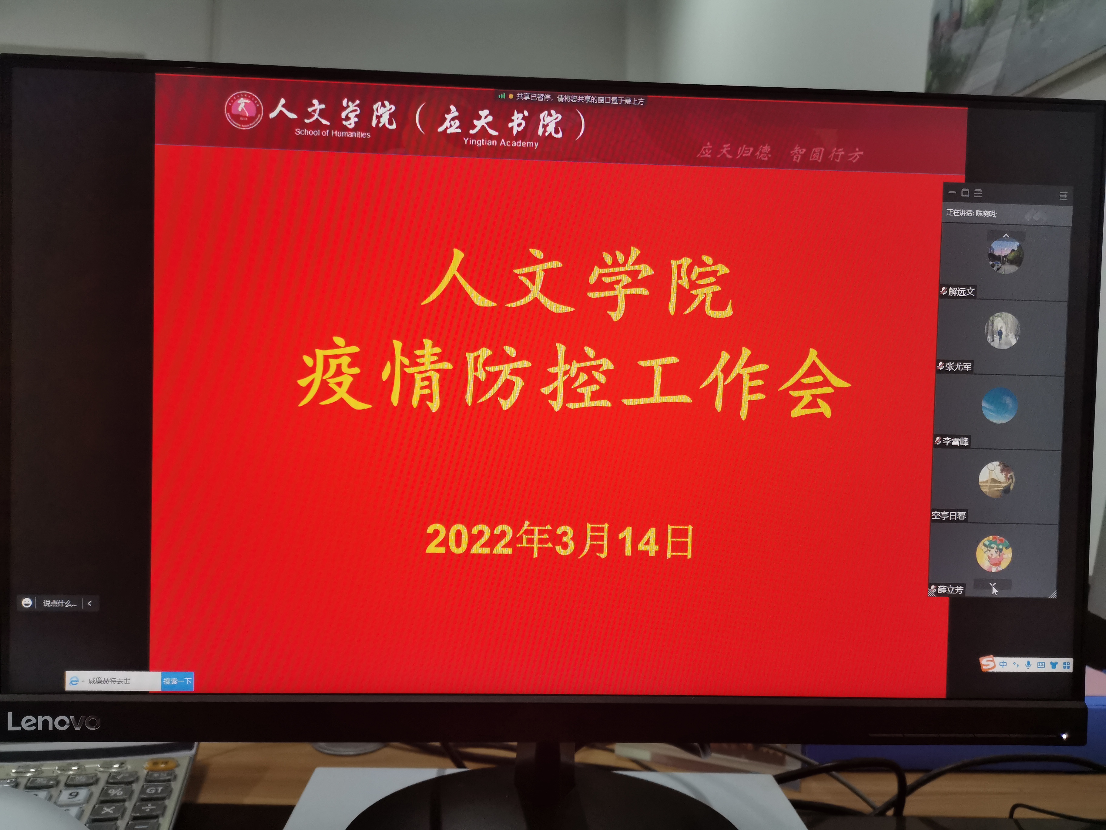 近期国内疫情多点多地频发,为进一步做好校园疫情防控工作,3月14日晚八点,Beat365官方网站召开线上全院教职工疫情防控工作会。会议由院长高建立主持。