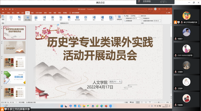 会上,薛老师从师范生教师职业能力角度强调了提升师范生学科素养和教学实践能力的重要性与必要性,指出要结合不同年级学生的学习特点,制定各具特色的专业课外实践方案:针对低年级学生开展读书分享会,以积累历史学知识和提升学科素养;针对高年级的学生开展微课比赛,以提高学生的实操技能。