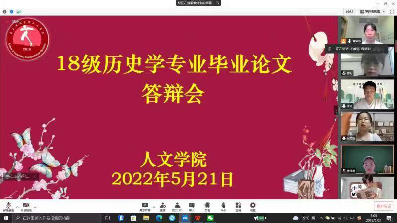 2022年5月21日上午,历史系进行第七次教研活动即2018级毕业生论文答辩。答辩分三个小组,采用线上线下混合式进行。