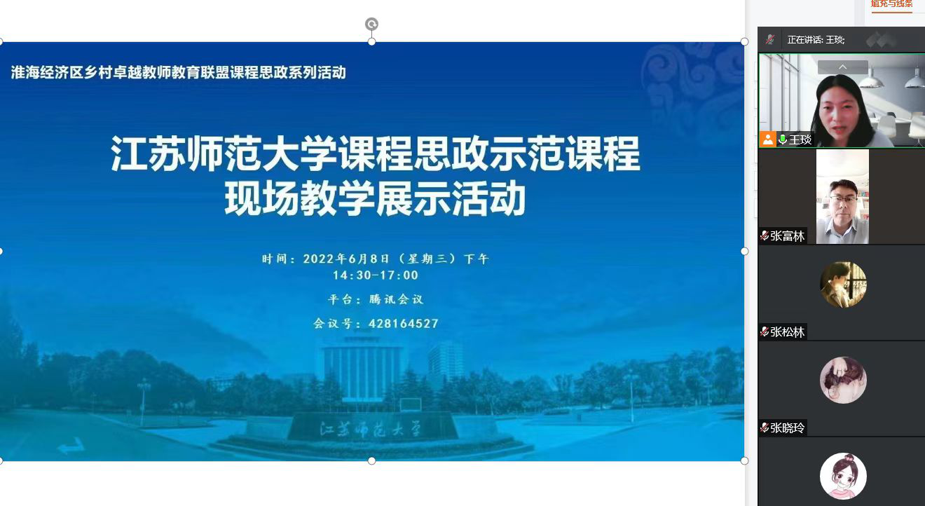 会上,全体老师观摩了江苏师范大学课程思政师范课展示,看他们怎么把思政元素润物细无声的融入到教学当中。