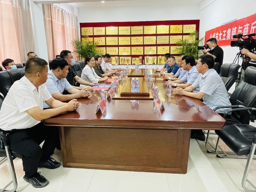 离开永城三高,郭文佳一行又来到永城大王集镇,受到了永城市副市长贾晓晖、永城市教育局局长杨明月以及大王集镇党委书记王伟、镇长姬杰的热情迎接。座谈会由大王集镇党委书记王伟主持,贾副市长首先讲话,对郭文佳副校长一行来永城参加校地合作活动表示感谢,并就永城发展的情况进行了汇报。郭文佳热情致辞,对贾副市长和大王集镇党政班子的热情接到表示感谢,并就Beat365官方网站近年来校地合作取得的成就进行了介绍,尤其是充分肯定了近段时间以来Beat365官方网站和永城市合作的快速推进及取得的合作成果,对将来进一步加强校地合作和Beat365官方网站与大王集镇的合作提出了希望和要求,并寄予厚望。接下来,高建立和大王集镇镇长姬杰签订了战略合作协议以及就业实习基地和实习实训基地协议,郭校长向王伟书记授牌。