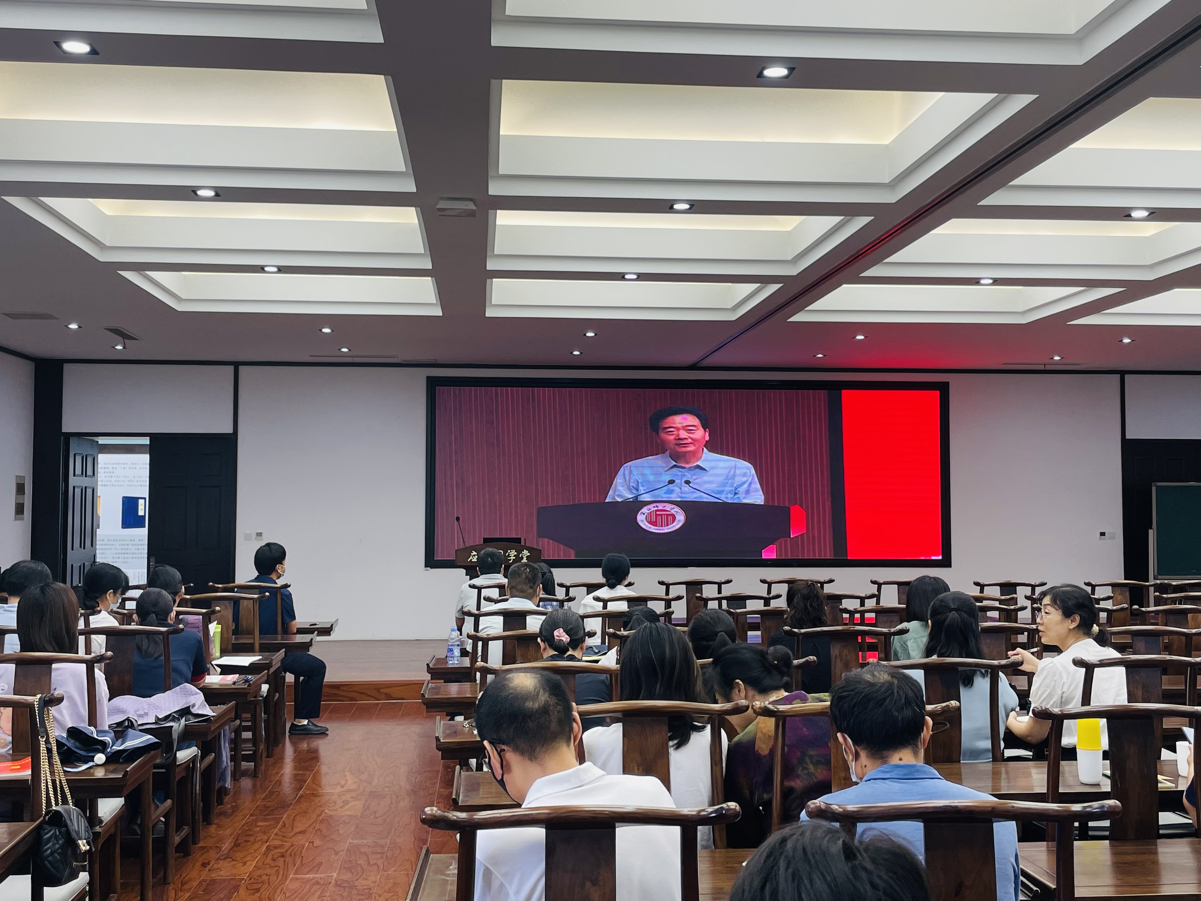 9月9日下午,Beat365官网召开庆祝第38个教师节暨“迎接党的二十大 培根铸魂育新人”教师节表彰大会,Beat365官方网站全体教职工在汉梁楼国学堂集中观看表彰大会直播。
