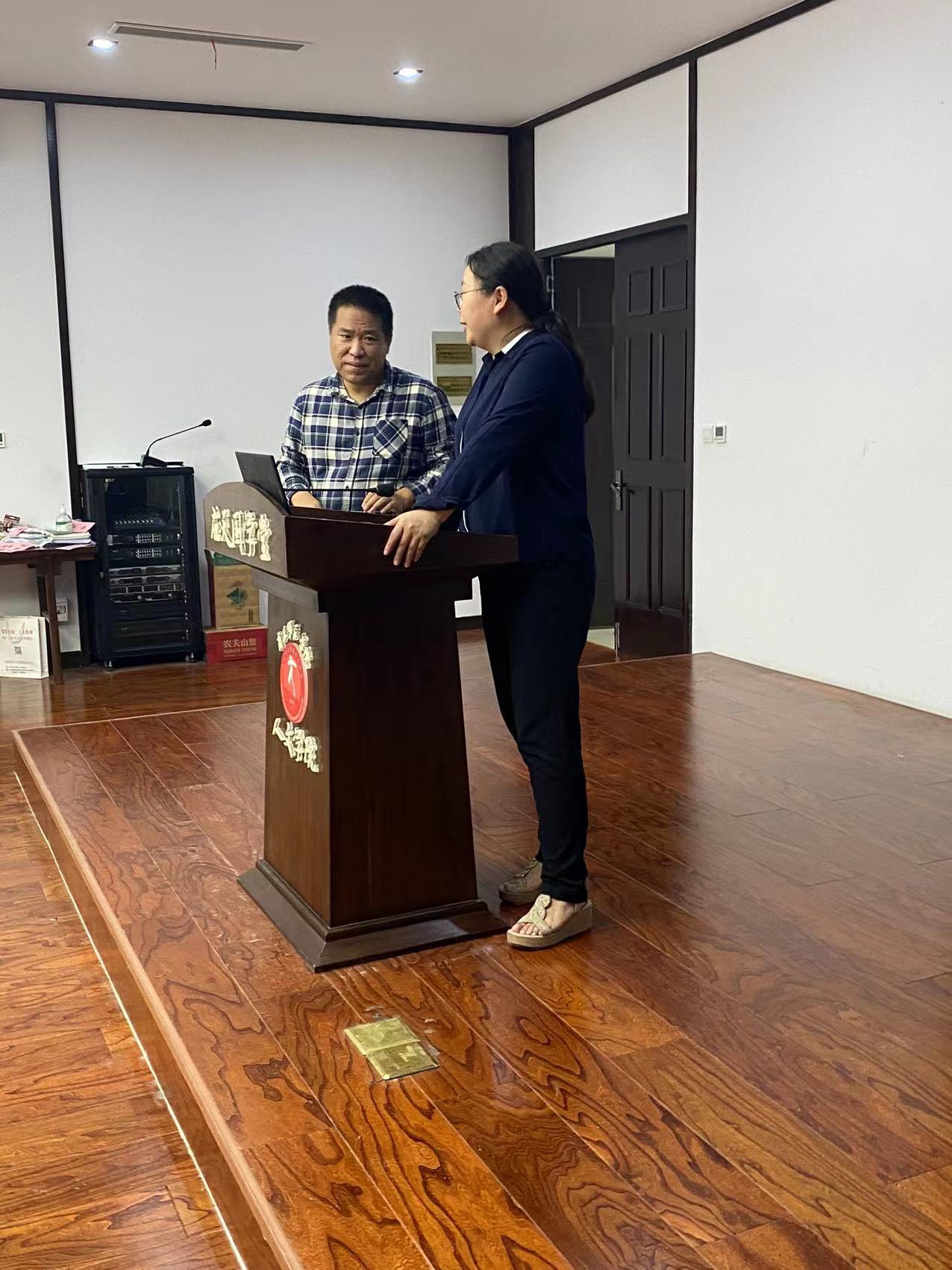 学院实验室主任刘海洲和办公室主任张巧玲两位老师先后检查了汉梁楼的204秘书实训室、国学堂和344语音室等,每到一处,两位老师都认真检查了实验室的设备,关闭电源开关,关好门窗,以保证实验室的安全;两位老师还到在建的文化旅游综合实验教学中心项目进行了检查,叮嘱施工的工人一定要安全施工,争取早日完工。