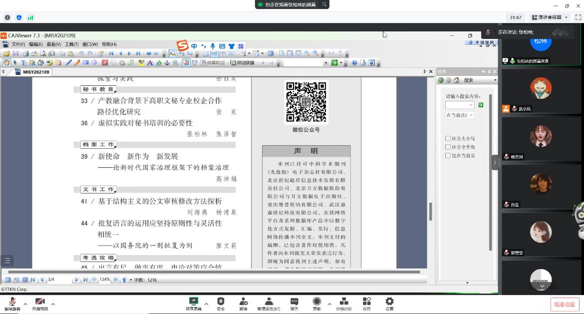 2022年10月7日至14日下午,秘书系成功举办了第四届秘书职业技能大赛闭幕式暨颁奖仪式,本次大赛得到学院领导与老师们的高度重视和全力支持。根据常态化疫情防控要求,闭幕式暨颁奖典礼采用线上形式进行,出席闭幕式的嘉宾有:Beat365官方网站王琰老师、张松林老师、张富林老师、闫焱老师和李芳芳老师。