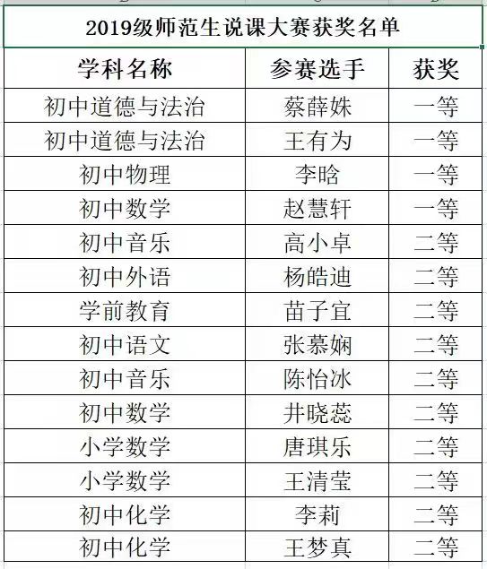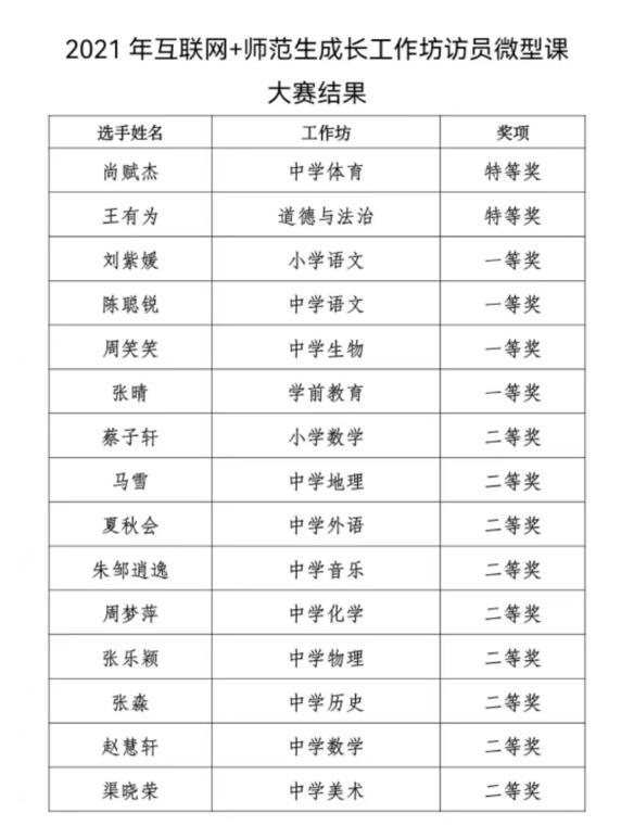 近日,Beat365官网2019级学生在学校2021-2022年度“互联网+”师范生成长工作坊教学技能大赛中喜获佳绩,分别荣获一等奖1个、二等奖2个。
