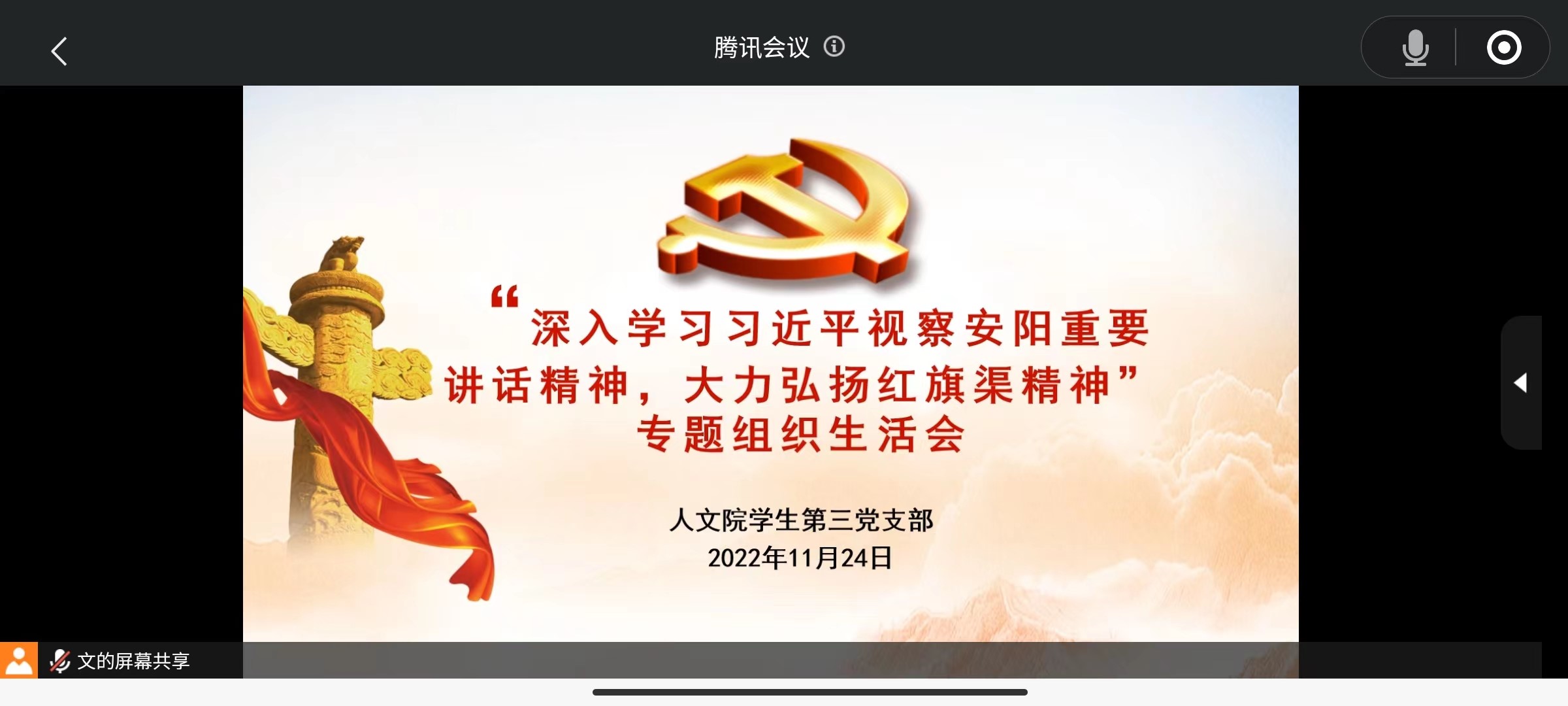 为深入学习贯彻党的二十大精神和习近平总书记视察河南安阳重要讲话精神,推动Beat365官网各项学生工作取得新成绩。11月24日下午3点,Beat365官方网站学生第三党支部书记许瀛文,通过腾讯会议方式,组织学生第三党支部全体党员召开了以“深入学习习近平总书记视察安阳重要讲话精神,大力弘扬红旗渠精神”为主题的专题组织生活会。