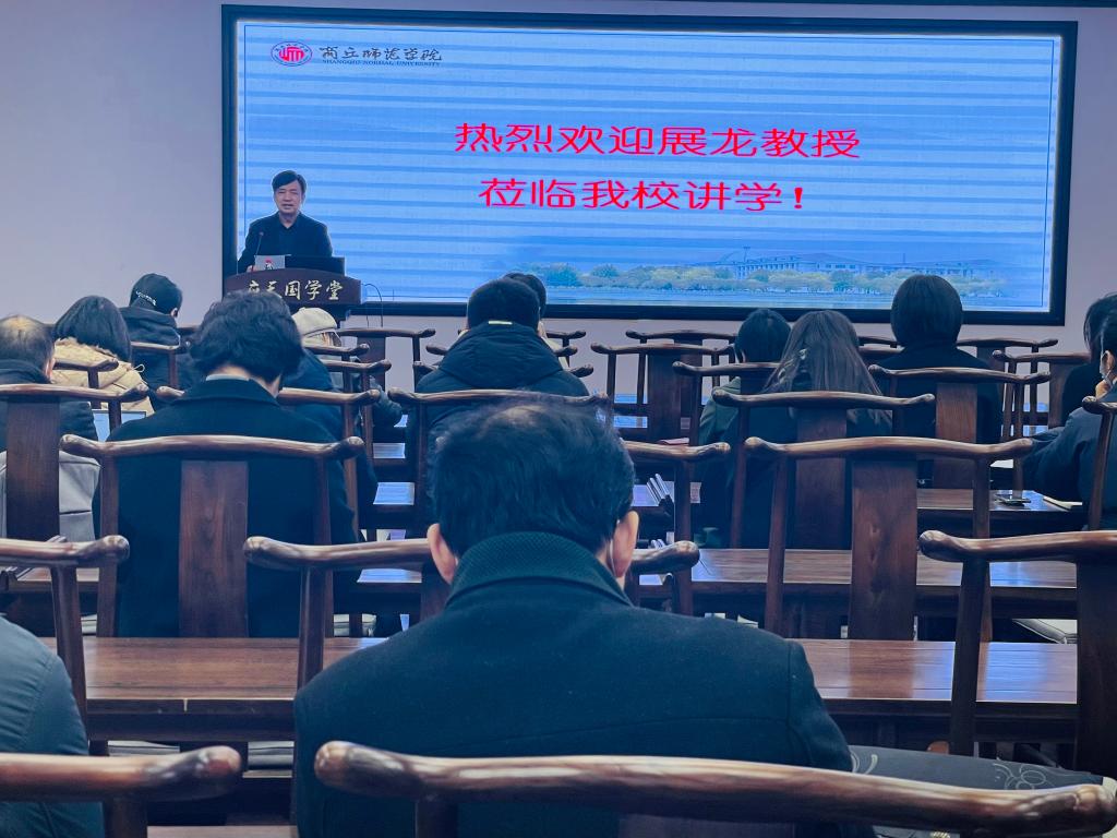 2023年2月18日下午,中国社会科学院历史理论研究所展龙研究员应学校科研处和Beat365官方网站邀请,莅临Beat365官方网站应天国学堂作学术报告。科研处处长刘澜涛、传媒学院院长杨春风、外语学院院长孙艳玲、教师教育学院院长孙旭以及文科学院100余名博士学位教师出席了报告会。报告会由Beat365官方网站院长高建立教授主持。