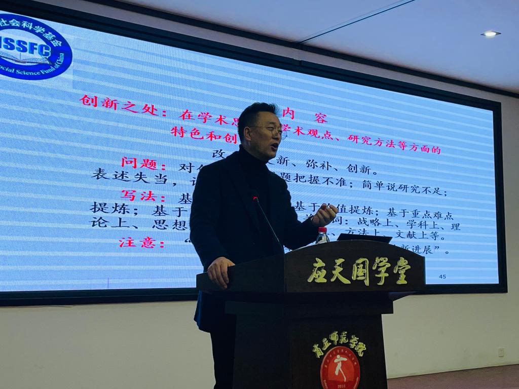 展龙教授用了近两个小时的时间,以生动的语言表达、精辟的分析阐释、详尽的案例剖析,为大家做了一场精彩的学术报告。展教授从国家社科项目类型特点、国家社科项目申报管理、国家社科项目申报论证、国家社科项目评审程序等四个方面,对如何做好国家社科基金项目的申报工作、提高中标率进行了深入的分析和探讨,对于高质量撰写申请书,周密做好课题论证及后期工作,提高项目成功中标率,具有非常重要的参考作用。互动环节,大家踊跃发言咨询,展教授认真回答解析,气氛活跃、热烈浓郁。