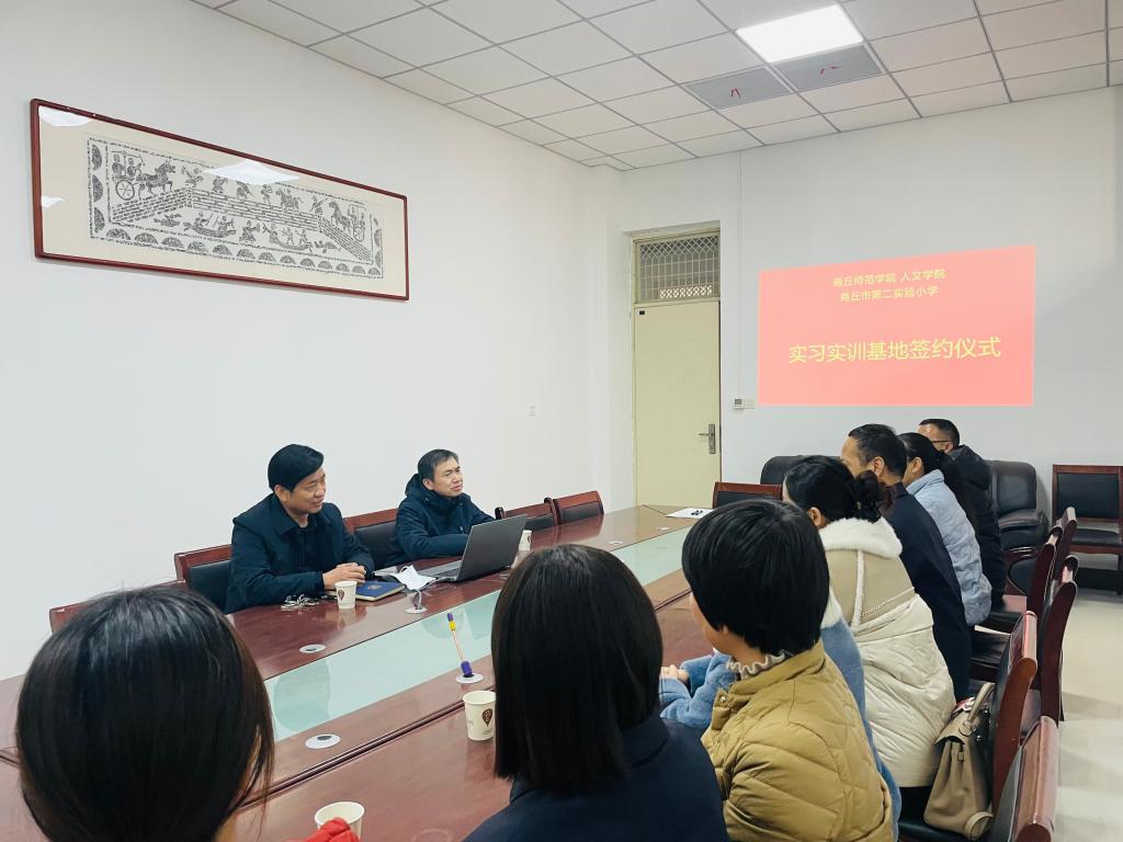 2023年2月15日上午,商丘市第二实验小学张洪涛校长一行10余人,到Beat365官方网站参观考察,高建立院长、谢书民教授热情接待了张校长一行。在参考考察后,双方在汉梁文化研究中心会议室进行了座谈交流,签约实习实训基地并授牌。