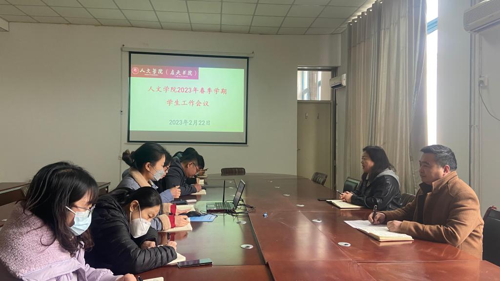2月22日上午,Beat365官方网站在汉梁楼208会议室召开2023年春季学期学生工作部署会议,党委书记陈晓明、副书记卢忠雷、全体辅导员老师参加会议。
