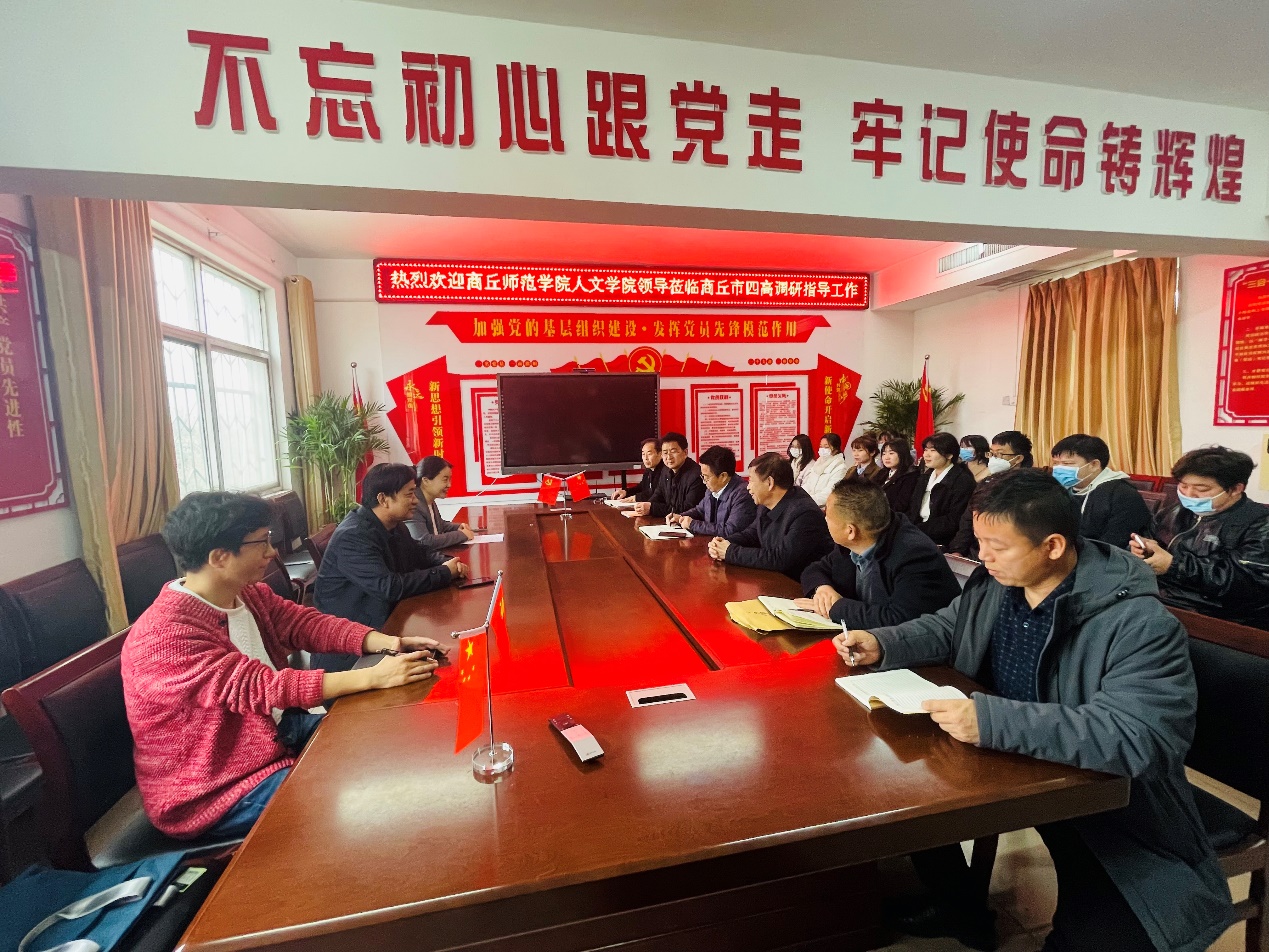 商丘市第四高级中学党委书记李晨,校长苗军、副校长邵红卫及教师代表接待了高建立一行。李晨首先对高建立一行表示热烈欢迎,并介绍了商丘市第四高级中学基本情况与办学优势特色;苗军校长介绍了高中历史师资与教学概况,苗军表示,在“3+1+2”高考改革新形势下,历史学科愈来愈受师生重视,师资需求也不断增加,希望今后能够加强与Beat365官网历史系的交流合作,补充学校师资力量。高建立对商丘市第四高级中学的热情接待表示感谢,鼓励实习生要珍惜实习机会,遵守实习纪律,向一线教师学习教学方法与经验,圆满完成实习任务,切实提升教学能力,为将来零距离就业打下坚实基础。