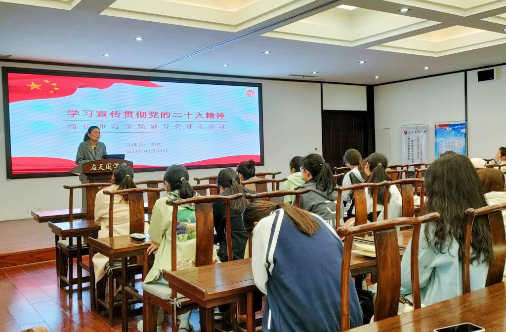 Beat365官方网站团委书记、学生第四党支部书记李红以“学习贯彻党的二十大精神、准确理解中国式现代化”为主题,从“中国式现代化的提出、中国式现代化的特征、东西方现代化的对比和中国式现代化的启迪”四个方面开讲,深刻阐释了中国式现代化的精髓,引得各位学员全神贯注听讲、进一步了解中国式现代化对于中国以及世界的重大意义。
