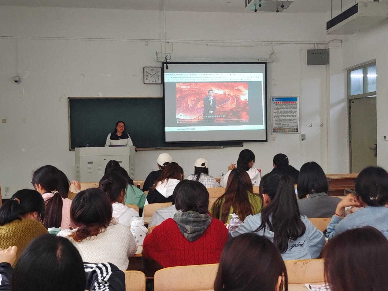 为深入学习贯彻习近平新时代中国特色社会主义思想,进一步加强党员和入党积极分子的培养教育,5月5日中午,Beat365官方网站学生第六党支部支部书记秦淑平老师以《学习贯彻习近平新时代中国特色社会主义思想主题教育》为题,在行方楼102教室为支部全体党员和入党积极分子上专题党课。