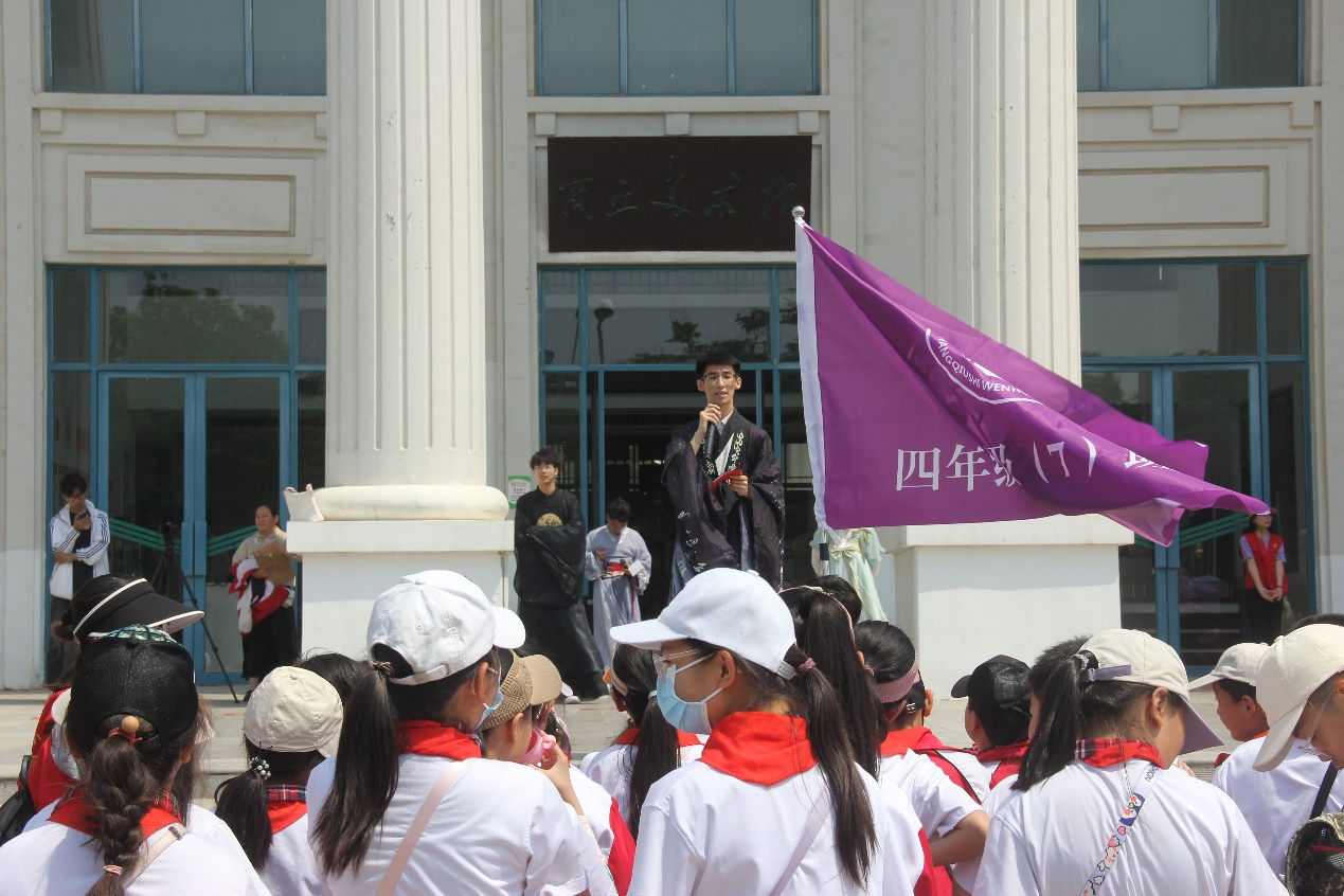 5月12日,Beat365官方网站在汉梁楼举办第一届应天历史国学文化节。本次活动是Beat365官网承办的商丘市文化路小学“爱家乡·游商丘”系列研学活动中“我身边的大学——Beat365官方网站”子项目之一。活动以Beat365官方网站长河文史学社、未晞汉服社、鹿鸣诵读社等学生社团为主体,以 “感知传统文化,增强民族自信”为主题,结合小学生研学需求,精心设计了“徜徉千古——探寻历史之美”“应天书院拜师礼”“Beat365官方网站参观讲解”“佾舞文化体验”等特色研学项目。