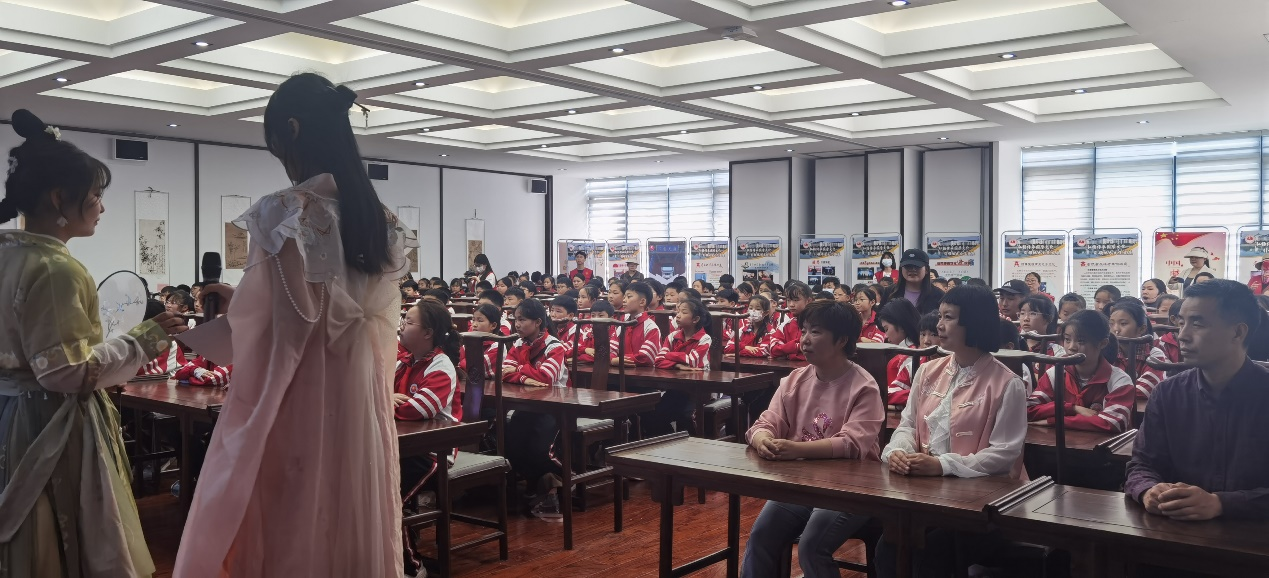 活动现场,由学生社团精心准备的历史文化景观类、古代建筑类、礼乐类、服饰类等优秀历史文化图片与简介,首先吸引了小学生的目光,同学们徜徉其中,探寻历史之美;有奖竞猜环节,主持人以国学文化为主题进行提问,同学们踊跃参与、气氛热烈,展现出当代小学生优良的国学知识素养。