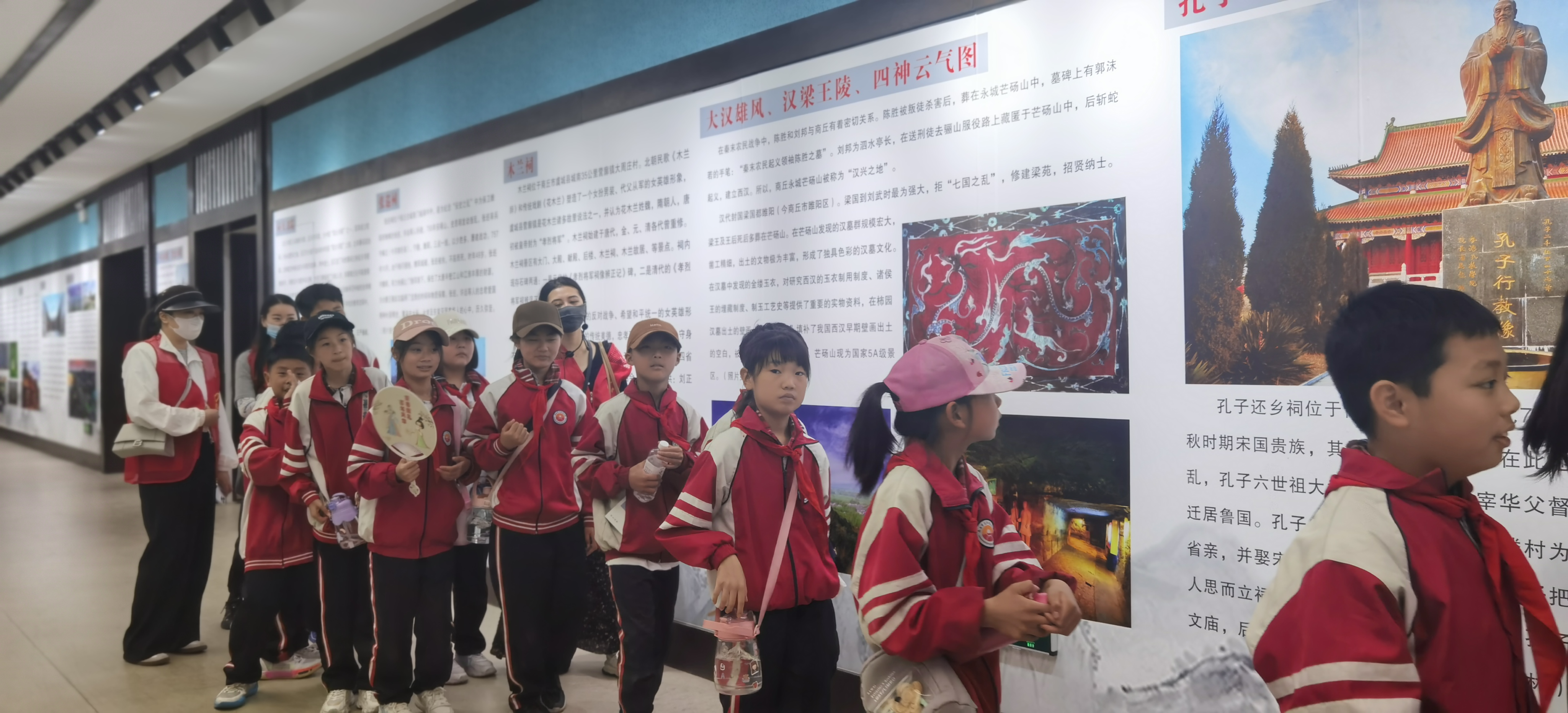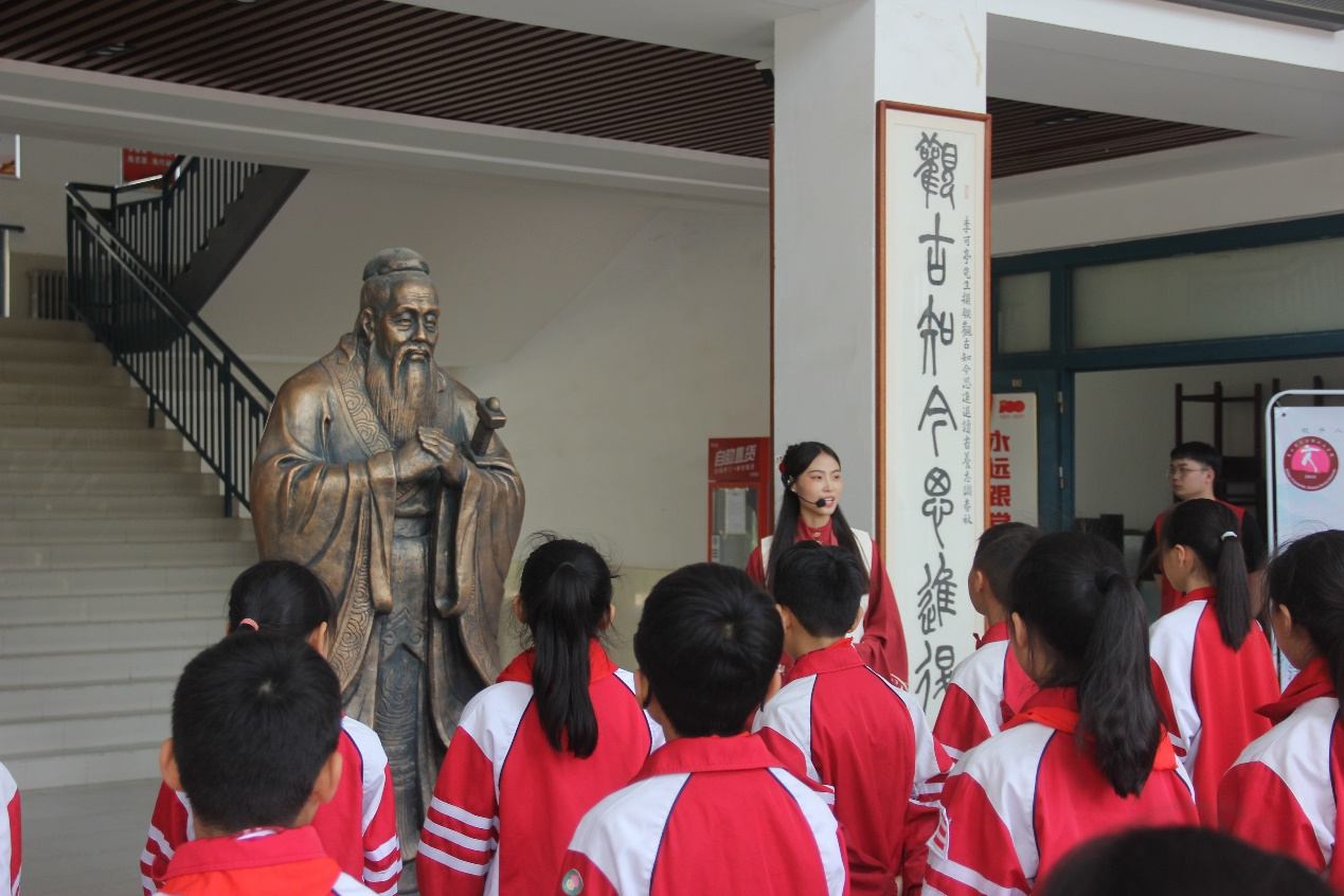 在应天国学堂,讲解员带领小学生参观应天国学堂大门、国学文化长廊、汉梁文化展厅,详细介绍了经史子集和商丘的历史文化名人,商丘作为历史上中国重要的文化发源地,有着极其丰厚的文化底蕴,对中华文明产生了重大而深远的影响,增强同学们对历史文化的认同感和自豪感。