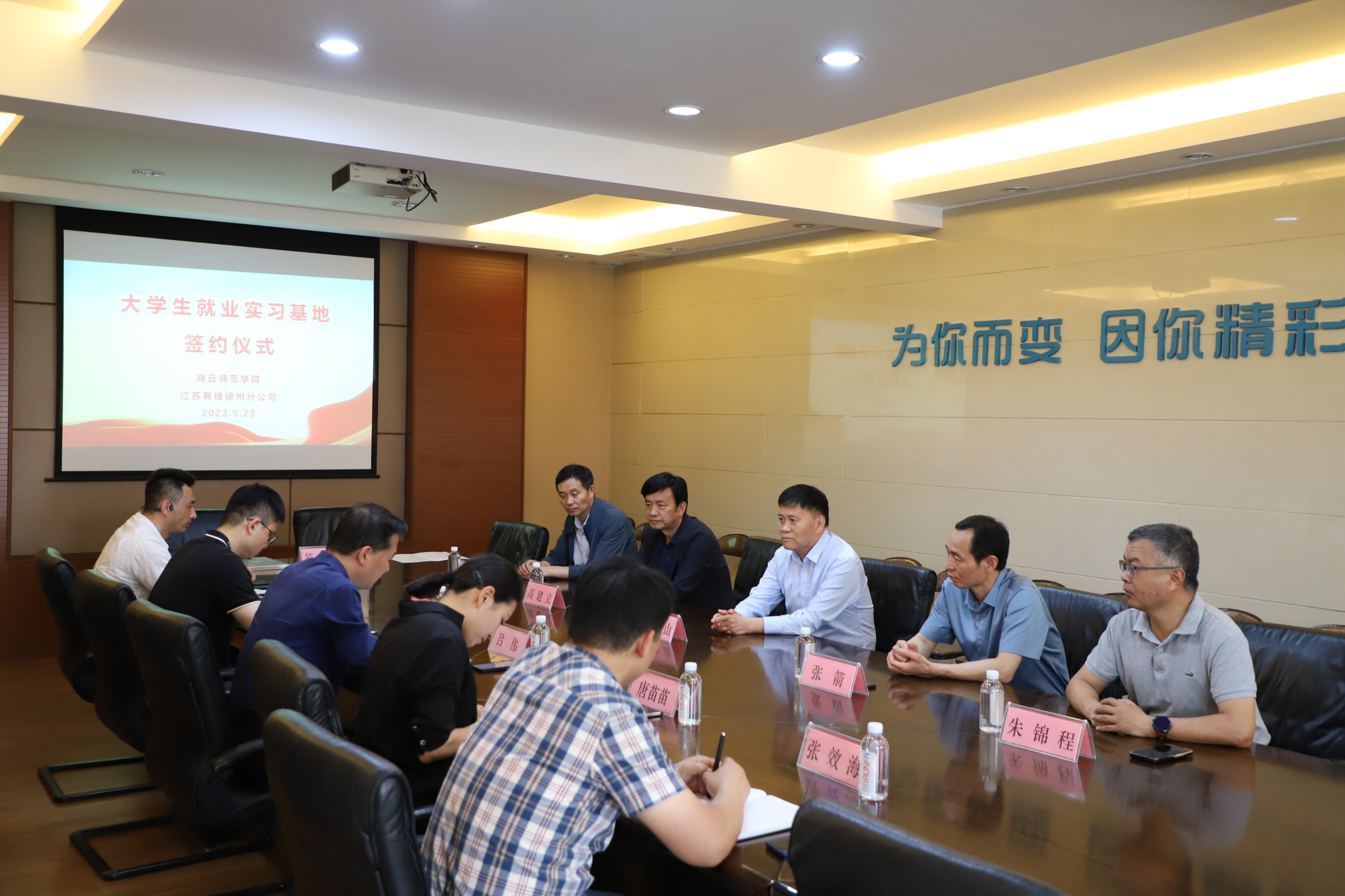 徐州分公司市场部经理赵志方、公客部经理唐苗苗和Beat365官方网站院长高建立分别介绍了本部门的情况,就双方合作尤其是Beat365官方网站学生就业实习问题进行了对口接洽和广泛深入的讨论。