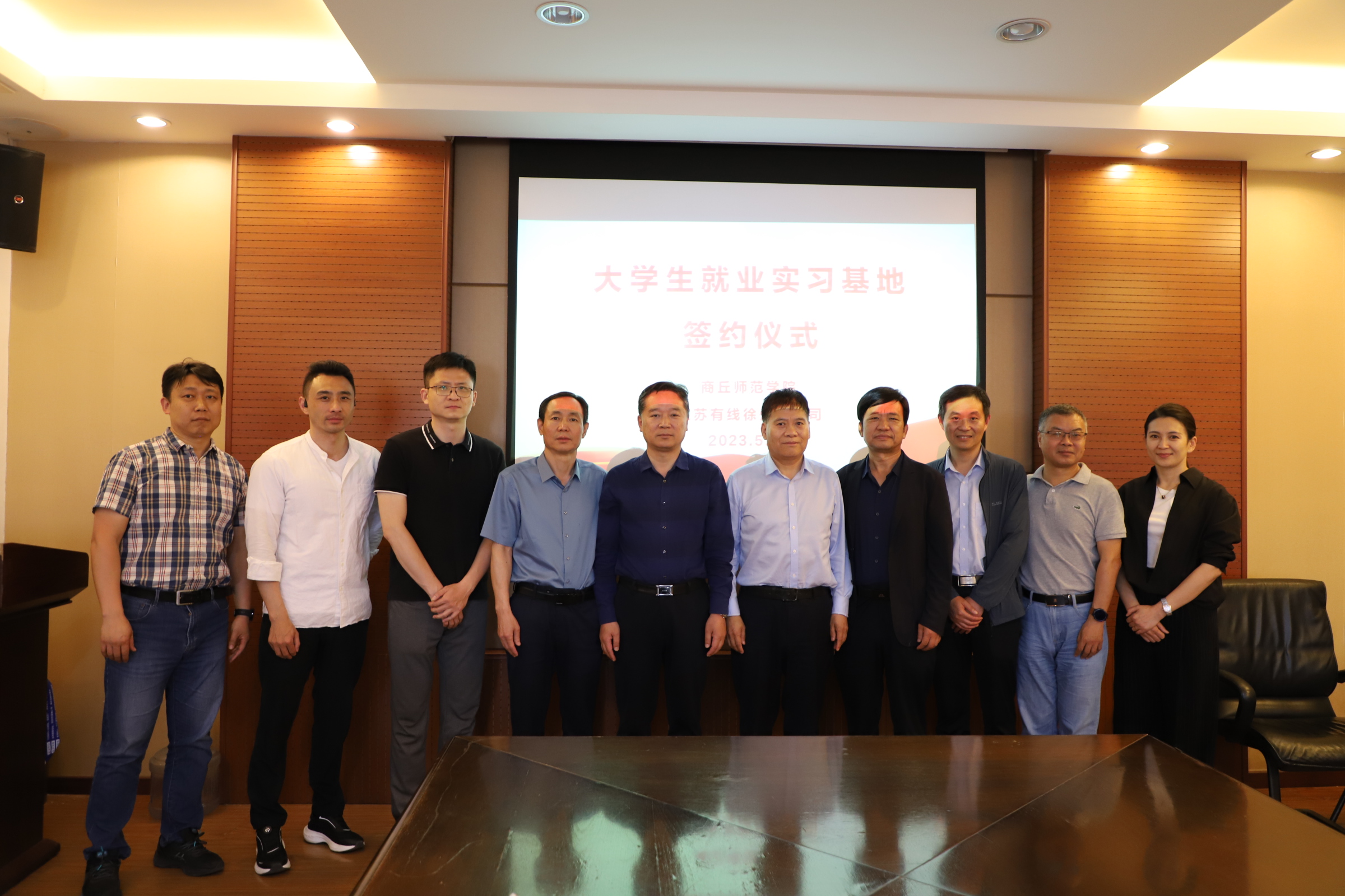 5月23日下午,校党委副书记吴金山、副校长张箭带领Beat365官方网站部分班子成员到江苏省广电有线信息网络股份有限公司徐州分公司开展访企拓岗促就业活动。公司副总经理吕伟及公司主要部门负责同志热情接待了吴金山副书记、张箭副校长一行。