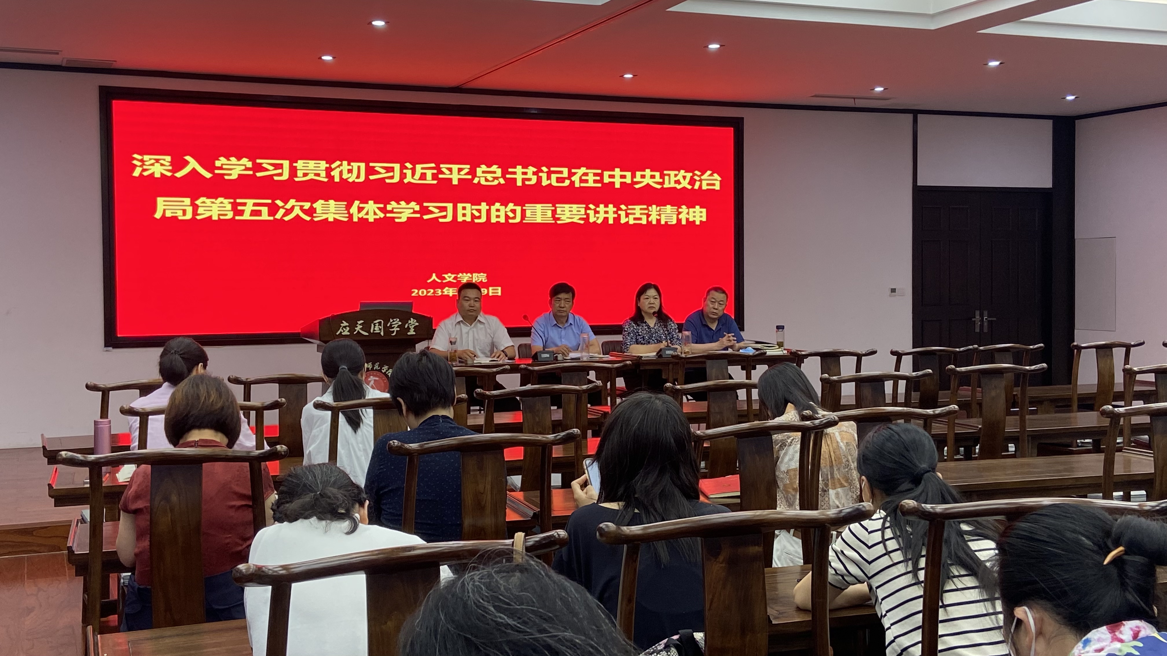 6月9日,学院在汉梁楼国学堂召开传达学习习近平总书记在中央政治局第五次集体学习时的重要讲话精神,并提出学习要求。学院班子成员和全体教职工参加会议。学院党委书记陈晓明主持会议并讲话。