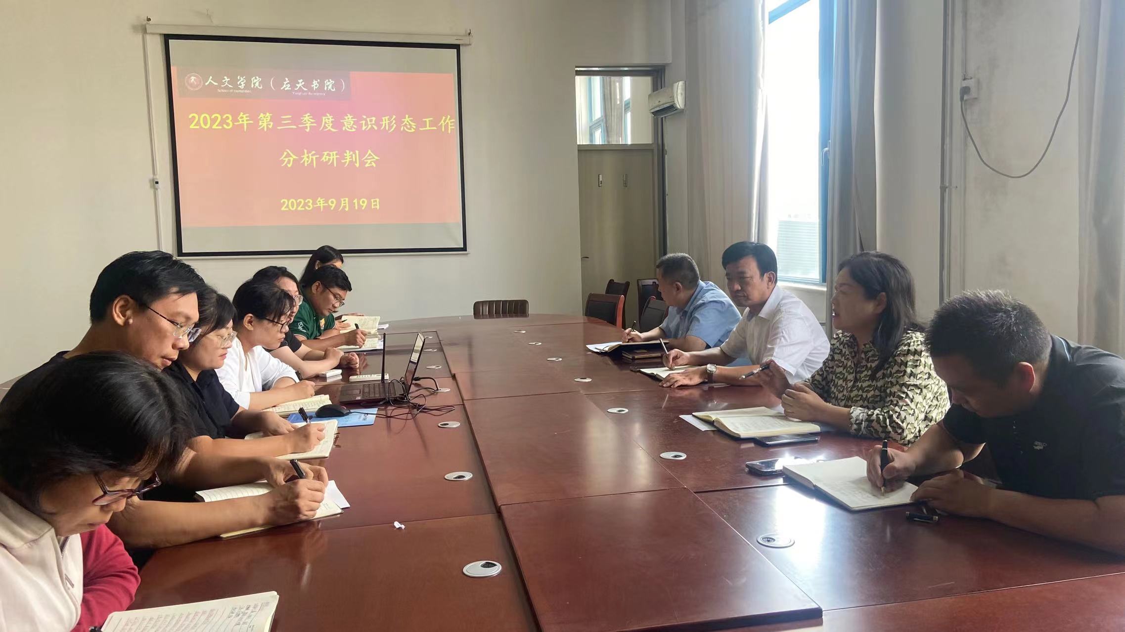 9月19日,Beat365官方网站在汉梁楼208会议室召开2023年第三季度意识形态工作分析研判会。Beat365官方网站党政领导班子成员、团委书记、学工办主任、教师代表和全体辅导员参加会议。会议由学院党委书记陈晓明主持。