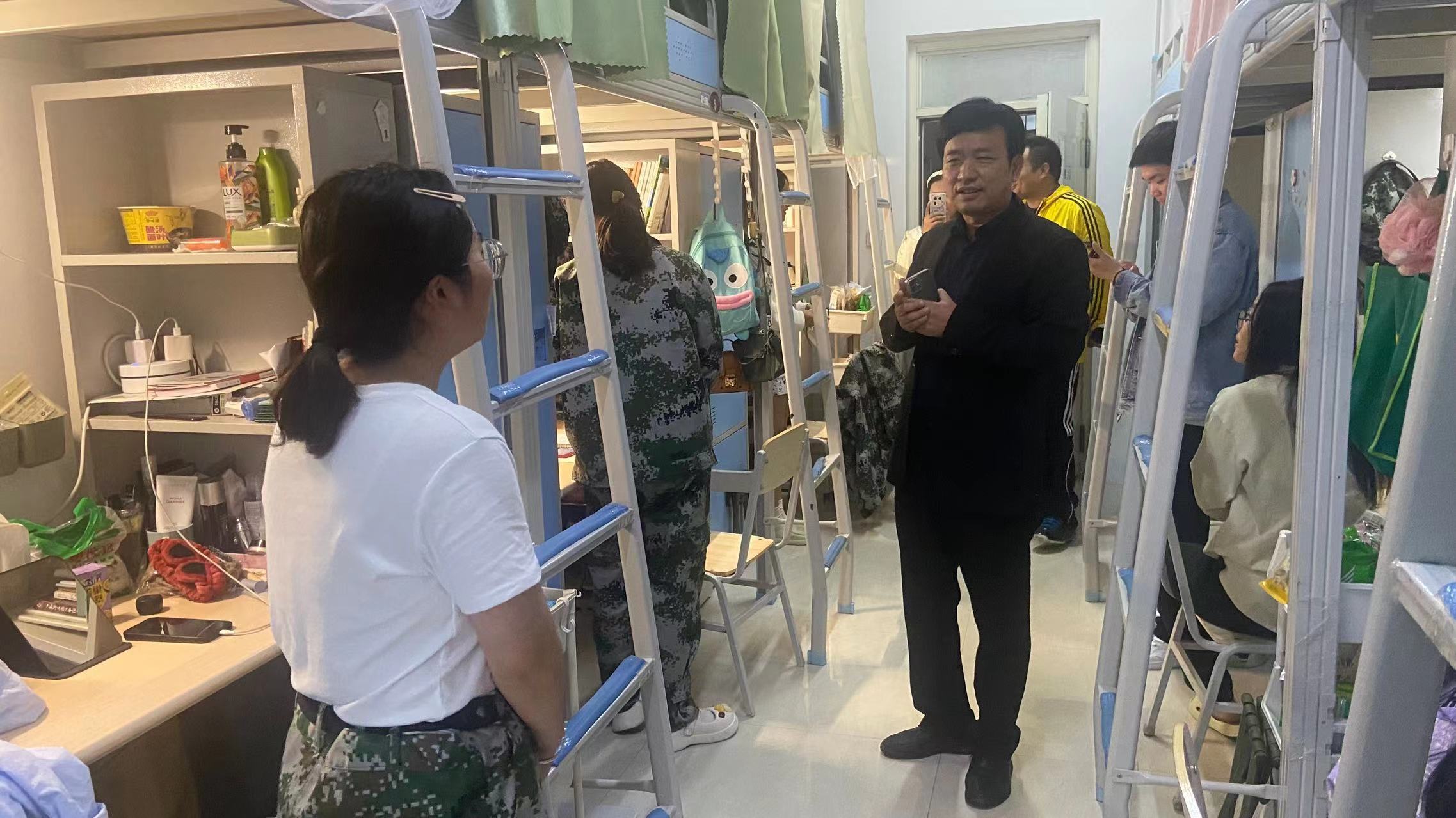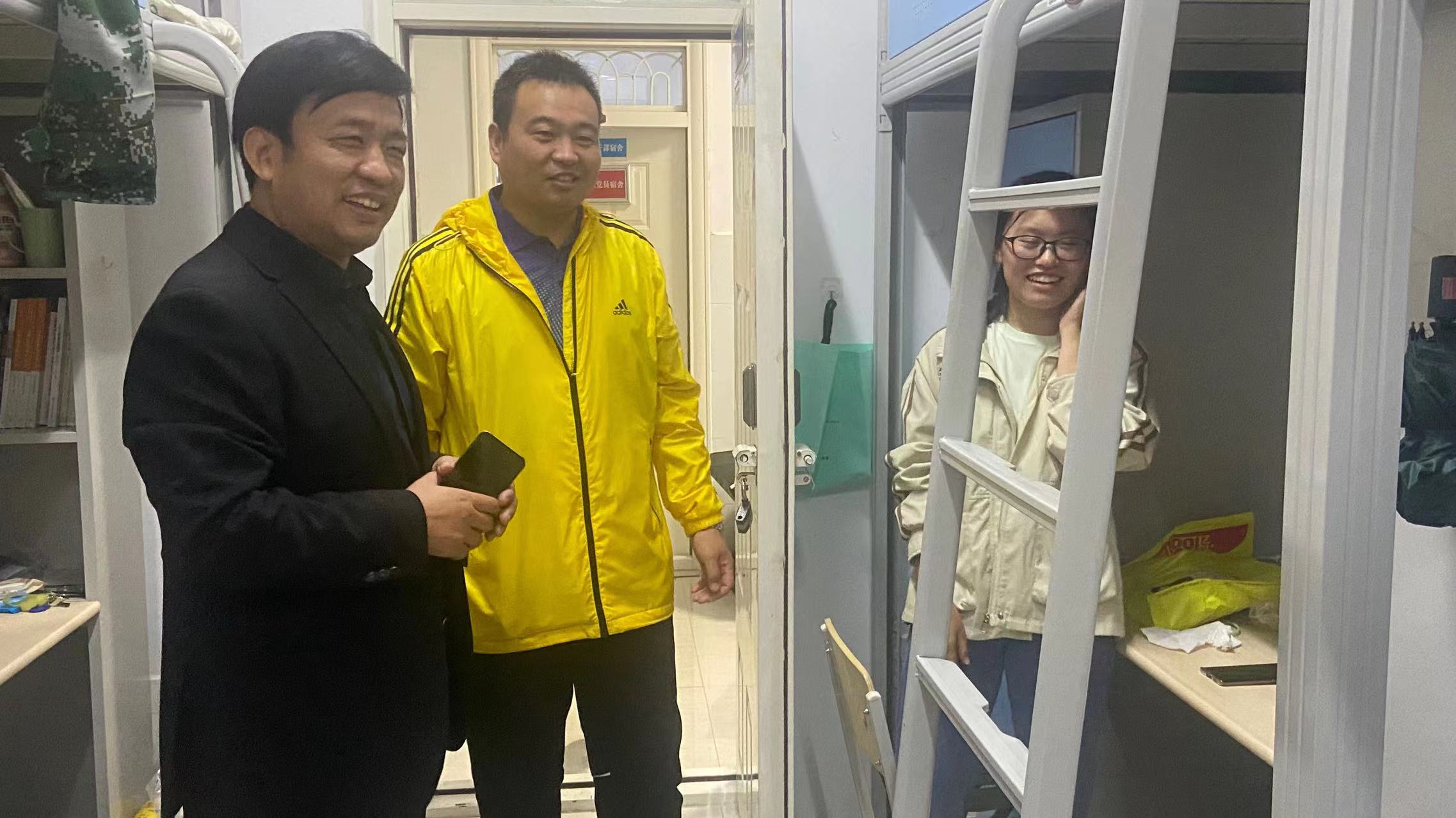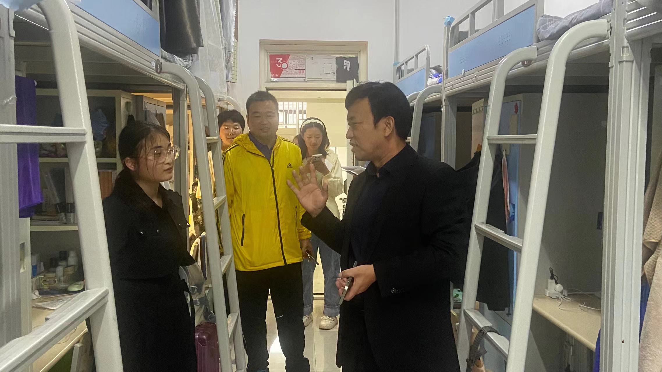 为了解Beat365官网新生学习生活情况,切实关心关怀学生成长成才,9月25日,Beat365官方网站院长高建立教授、党委副书记卢忠雷带领辅导员老师们深入2023级新生宿舍开展“双节”假期期间的学生安全文明教育及宿舍安全风险隐患排查。