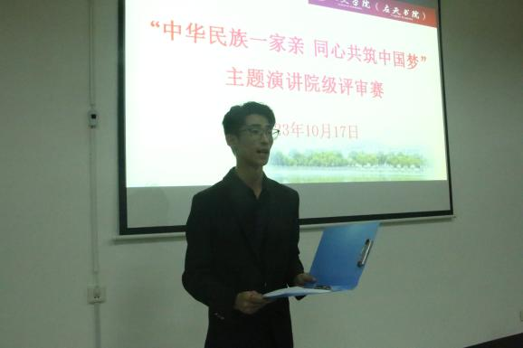 比赛伊始,杨镇为参赛同学介绍评分标准。接着,各参赛同学按照顺序依次进行演讲。赛事过程中,选手们紧紧围绕“中华民族一家亲,同心共筑中国梦”的主题展开论述,娓娓道来着属于新时代青年的家国情怀。他们气定神闲,散发着自信和坚定;他们的言语和动作充满激情和动感;他们以扎实的功底、真挚的情感表达了对中华民族共同体意识的认同,展现了人文学子极佳的精神面貌。