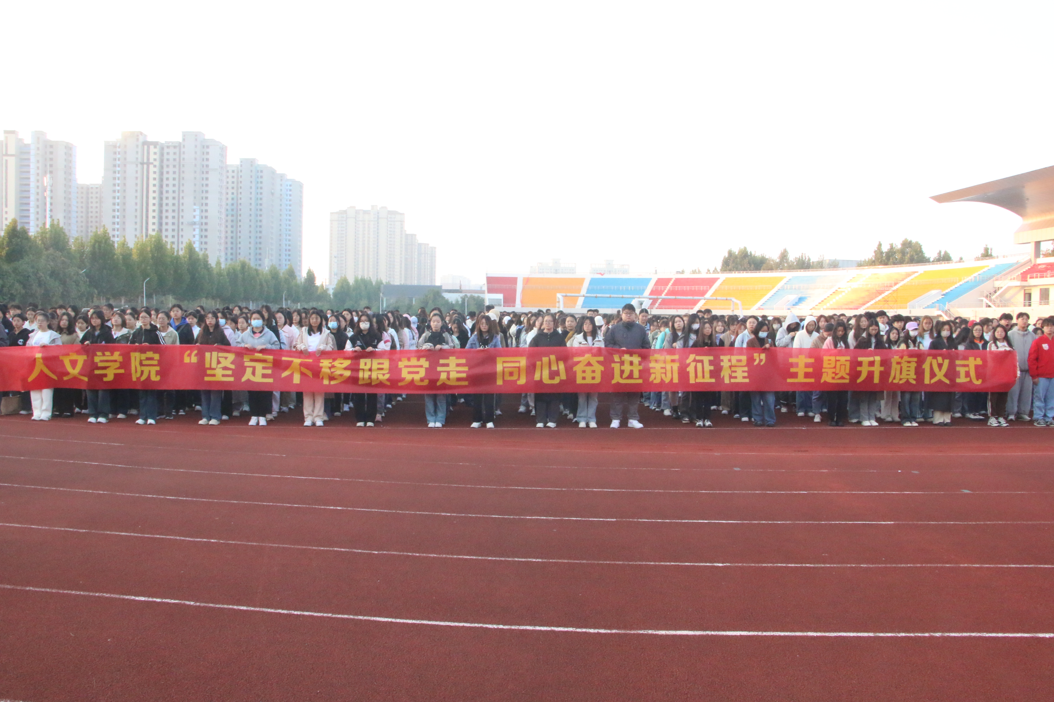 为进一步加强大学生思想政治建设,坚定理想信念,厚植家国情怀,锤炼品德修为,10月23日早上,Beat365官方网站在梁园校区操场隆重举行“坚定不移跟党走,同心奋进新征程”主题升国旗仪式。Beat365官方网站党委书记陈晓明、党委副书记卢忠雷及学院全体辅导员、教师代表、全体学生参加了升旗仪式。升旗仪式由卢忠雷主持。