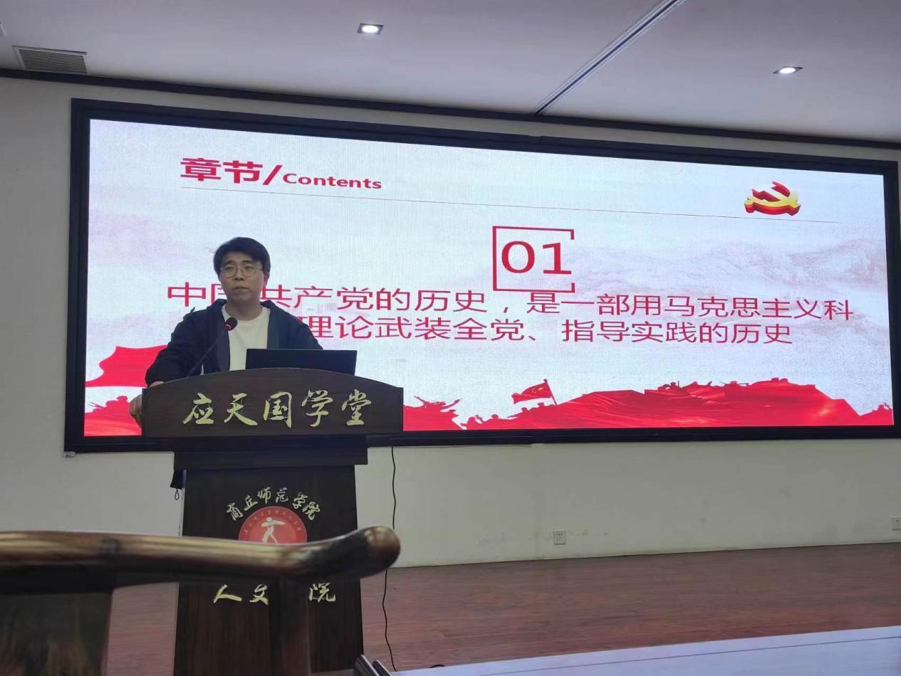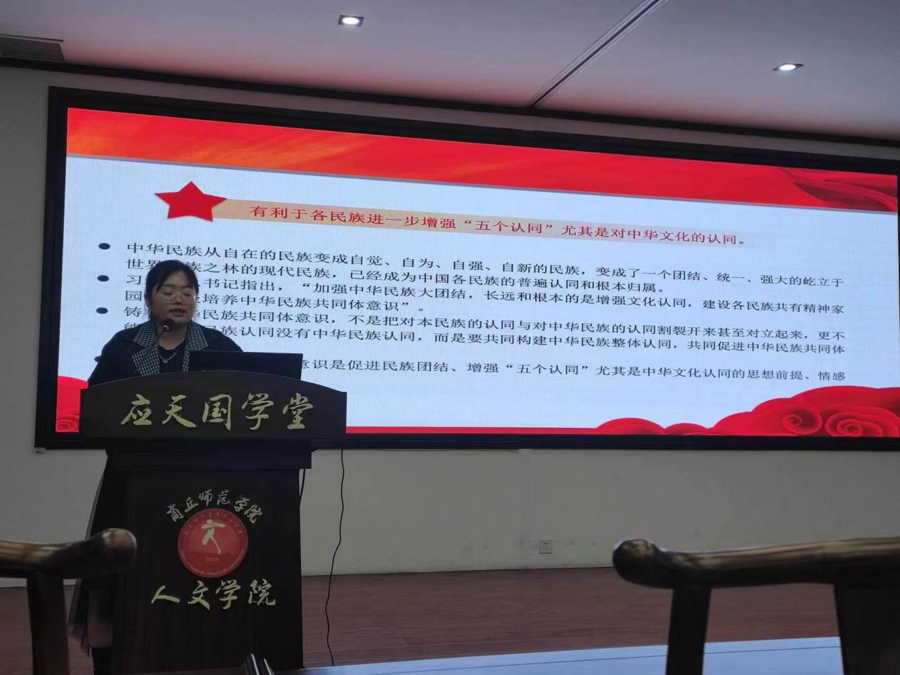 学院学生第一党支部书记乔明以“学习贯彻党的二十大精神、铸牢中华民族共同体意识”为主题,从“党的二十大报告主题到铸牢中华民族共同体意识的政治意义、理论意义、实践意义、文化意义、时代意义”等五个方面向学员们阐释了中华民族共同体意识是国家统一之基、民族团结之本、精神力量之魂,铸牢中华民族共同体意识是中华民族共同体意识从自在到自觉,再到自强发展变化的必然结果。