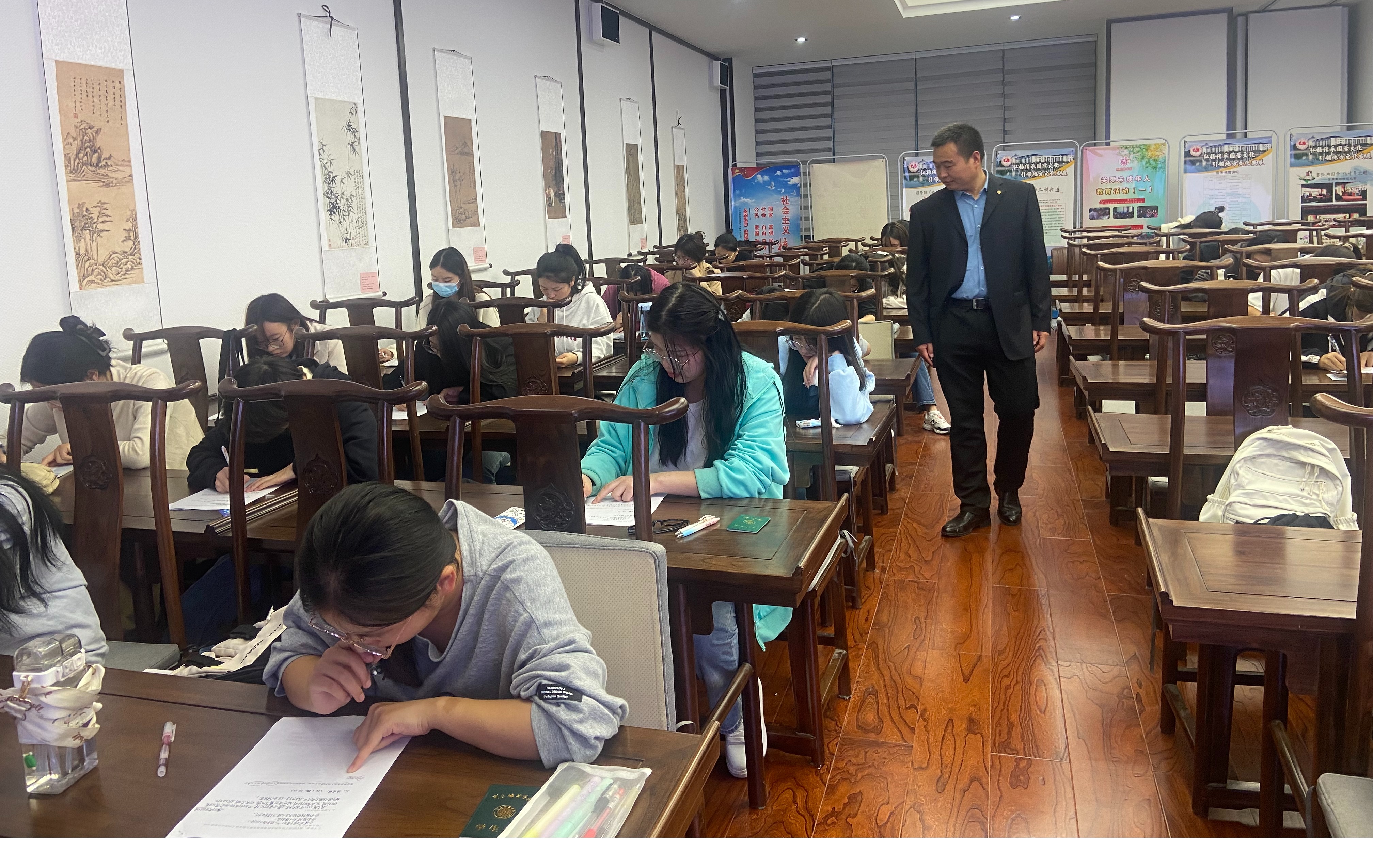 为检验入党积极分子的学习情况,考察入党积极分子理论素养,学院分党校于10月29日晚组织了本期入党积极分子结业考试。考试内容包括党章、党史、党的二十大精神和习近平新时代中国特色社会主义思想等内容。考试过程中,同学们认真作答,自觉遵守考场纪律。