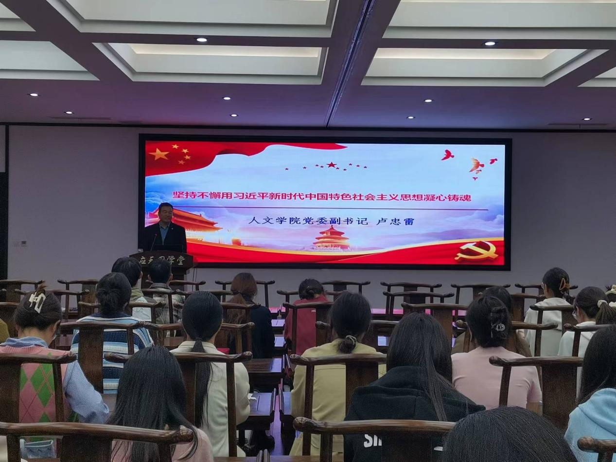 学院党委副书记卢忠雷以“坚持不懈用习近平新时代中国特色社会主义思想凝心铸魂”为题,从“习近平新时代中国特色社会主义思想的主要内容、精髓要义和坚持不懈用习近平新时代中国特色社会主义思想凝心铸魂”三个方面,结合自身学习体会和工作生活实际展开分享,深刻阐述了习近平新时代中国特色社会主义思想的世界观和方法论,为入党积极分子进行了一场主题鲜明、内容丰富、论述透彻的理论培训。