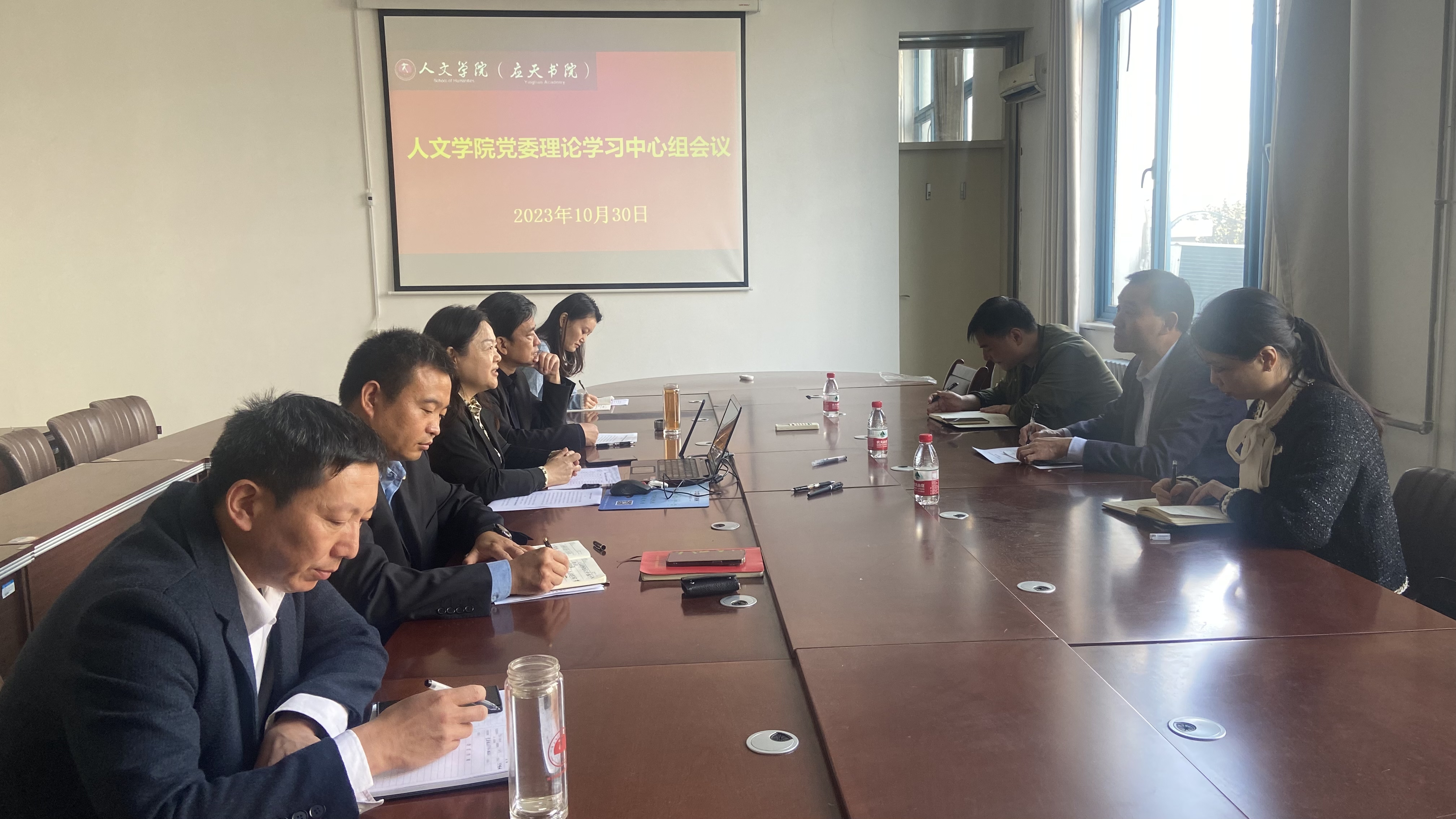 10月30日上午,Beat365官方网站在汉梁楼208会议室召开党委理论学习中心组会议。校党委巡学旁听第三组成员数学与统计学院党委书记孟学超、校党委组织部副部长曹松梅、校党委统战部民族宗教科科长张玉盺,Beat365官方网站党政班子成员、团委书记参加会议。会议由学院党委书记陈晓明主持。