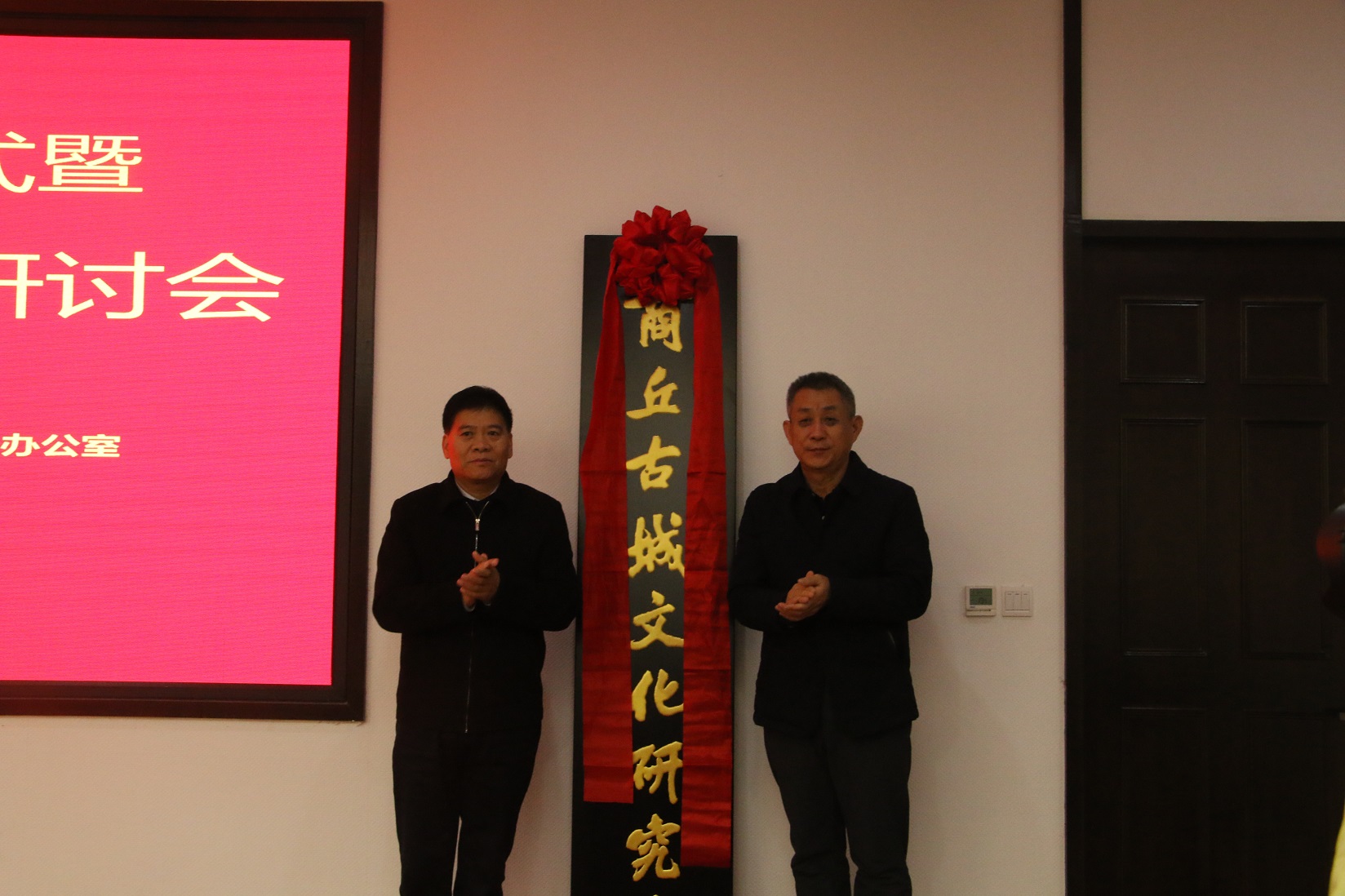 会议于上午八点三十分在Beat365官方网站应天国学堂正式开始,Beat365官方网站高建立院长主持会议。首先,商丘市文联副主席曹思航宣布研究会工作职责和组成人员名单,接下来,商丘市委宣传部副部长刘道明和Beat365官网党委副书记吴金山为商丘古城文化研究会揭牌。