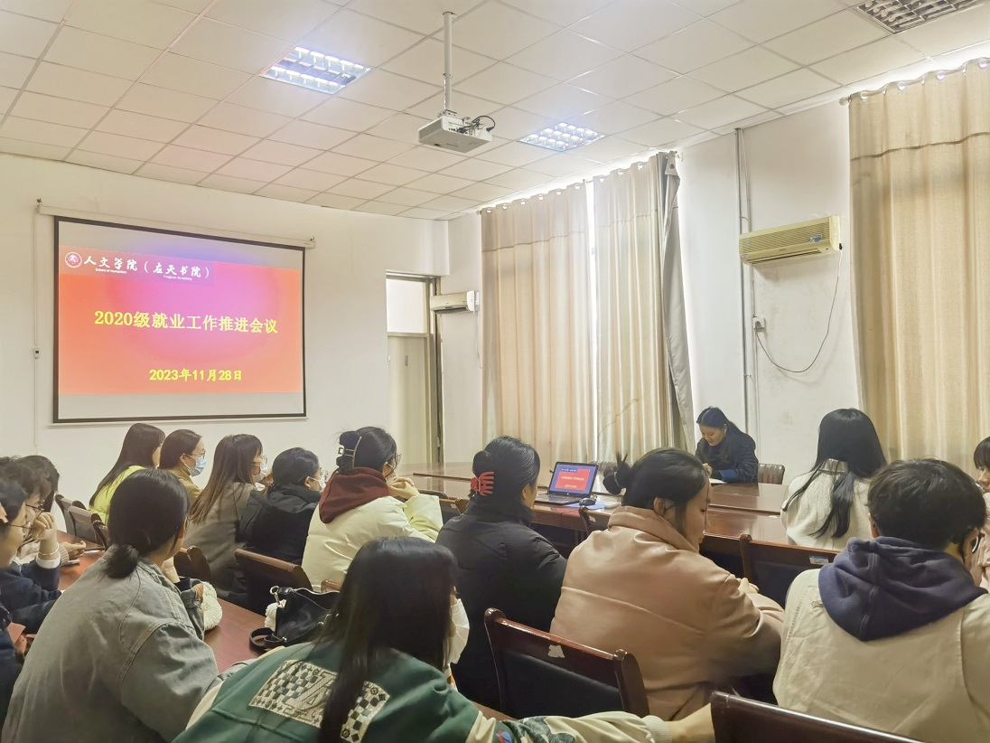 为进一步推进毕业生就业工作,11月28日下午,Beat365官方网站在汉梁楼208会议室召开就业工作推进会议,2020级全体学生干部参加,会议由辅导员李红主持。