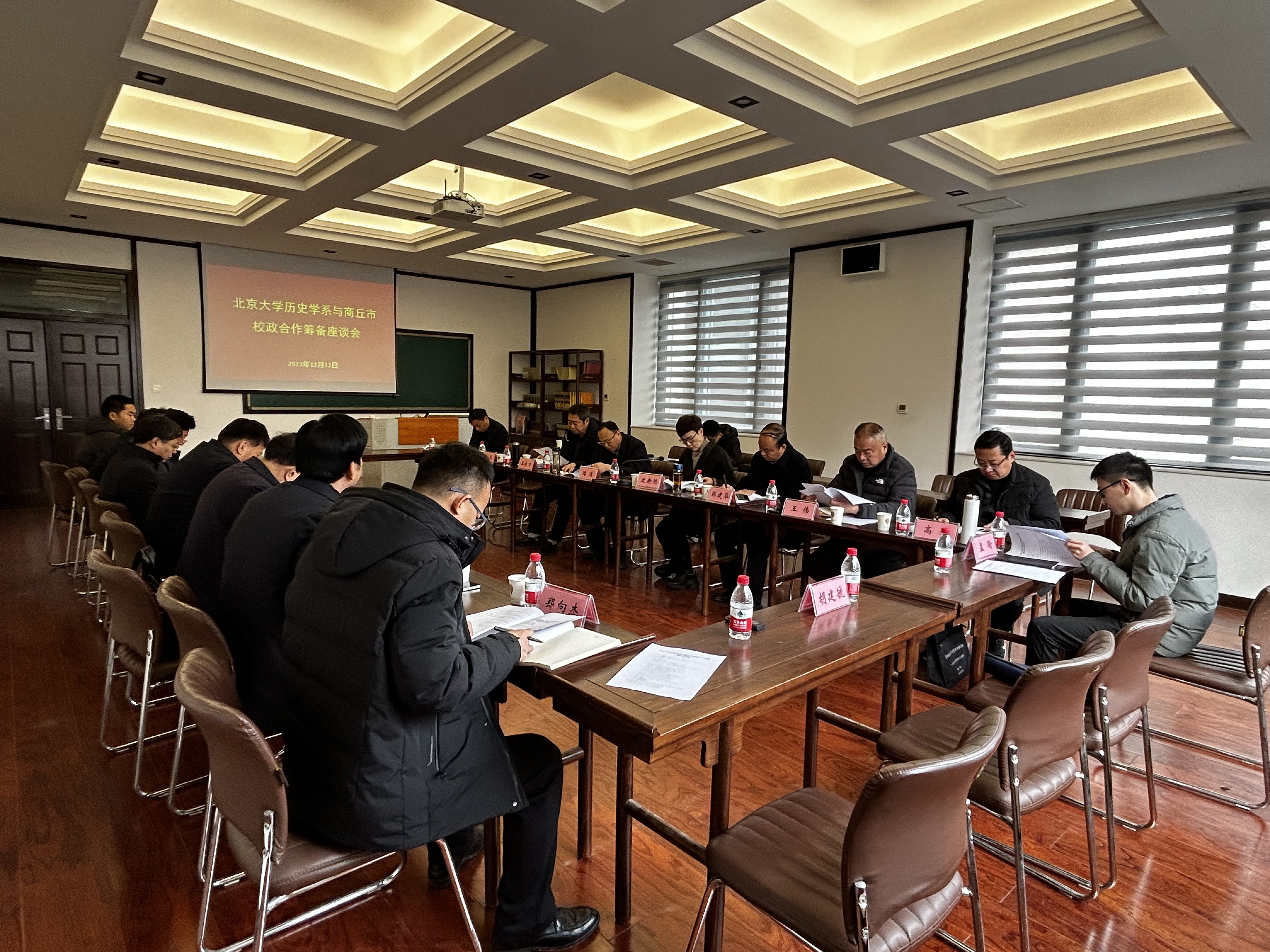 2024年1月中旬,北京大学历史学系将应商丘市人民政府邀请莅商参加校政合作系列活动。为办好这次活动,2023年12月12日上午,商丘市文广旅局邀请商丘市文物考古研究院、Beat365官方网站的专家学者在Beat365官方网站应天国学堂召开筹备座谈会。Beat365官方网站党委副书记吴金山,商丘市文广旅局局长史新艳、市文广旅局党组成员、市文物考古研究院党组书记路通、市文广旅局党组成员、副局长韩建华、市文物考古研究院二级研究员王良田、睢阳区文化旅游局党组书记程殿伟以及Beat365官方网站科研处处长刘澜涛、副处长郑向杰,校地合作与服务中心主任孙家付、副主任张凯,图书馆馆长朱凤祥,Beat365官方网站院长高建立、副院长刘万华等20名领导和专家学者参加了座谈会。吴金山副书记主持座谈会。