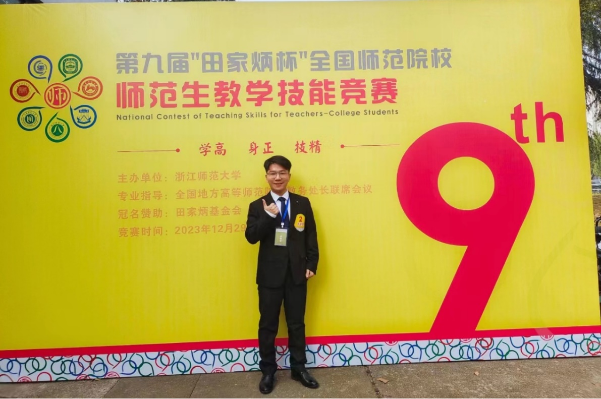 12月29日-31日,第九届“田家炳杯”全国师范院校师范生教学技能竞赛决赛在浙江师范大学举行,陈佳伟同学在现场决赛中以优异的成绩荣获全国一等奖,这是教育部师范教育协同提质计划实施的又一标志性成果。