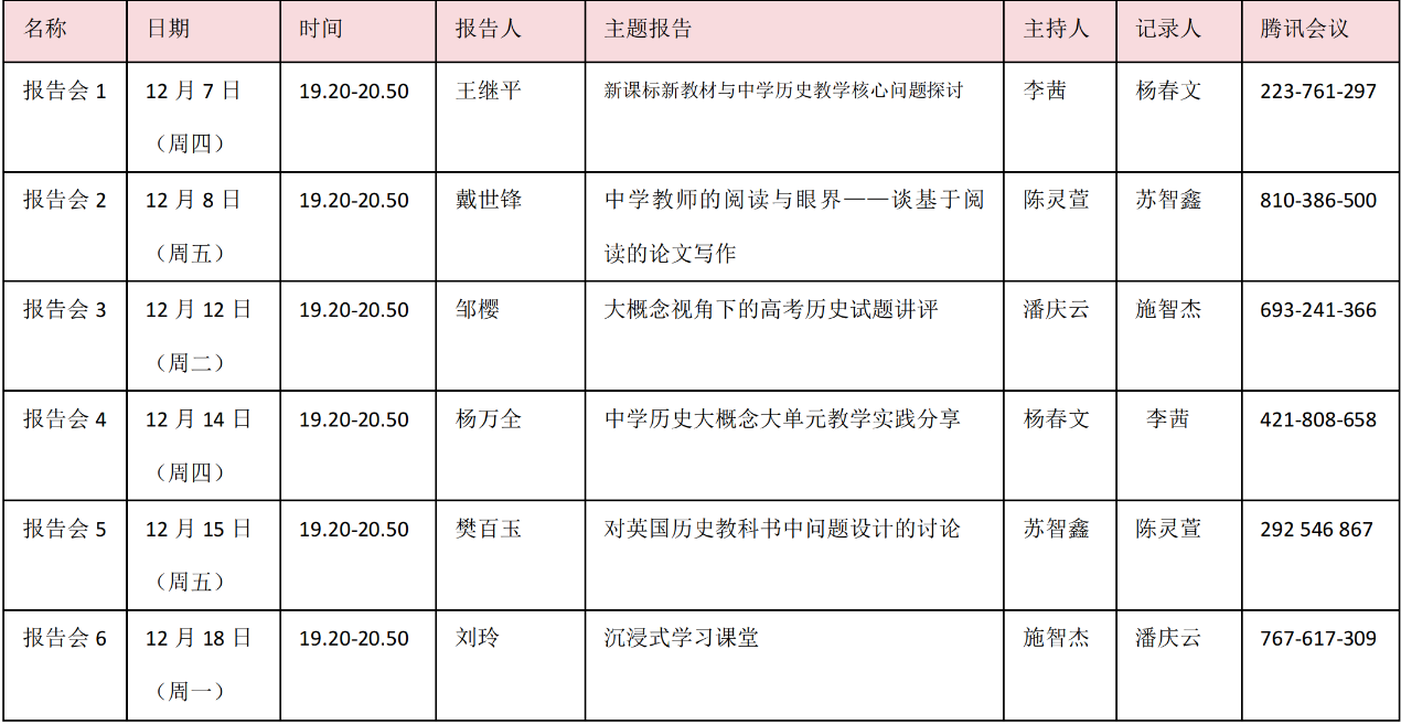12月7日-18日,历史学科工作室开展了种子教师理论学习培训,教学名师与教育专家围绕历史学科教学前沿理论、核心问题、阅读与论文写作、大单元教学实践、沉浸式学习课堂、高考试题评讲、问题设计等主题为广大师生带来一场学术盛宴。讲座后专家与工作室成员进行了深入的交流与互动,并对即将参加“田家炳杯”赛决赛的工作室种子学生、Beat365官方网站历史系2021级师范生陈佳伟进行赛前指导。