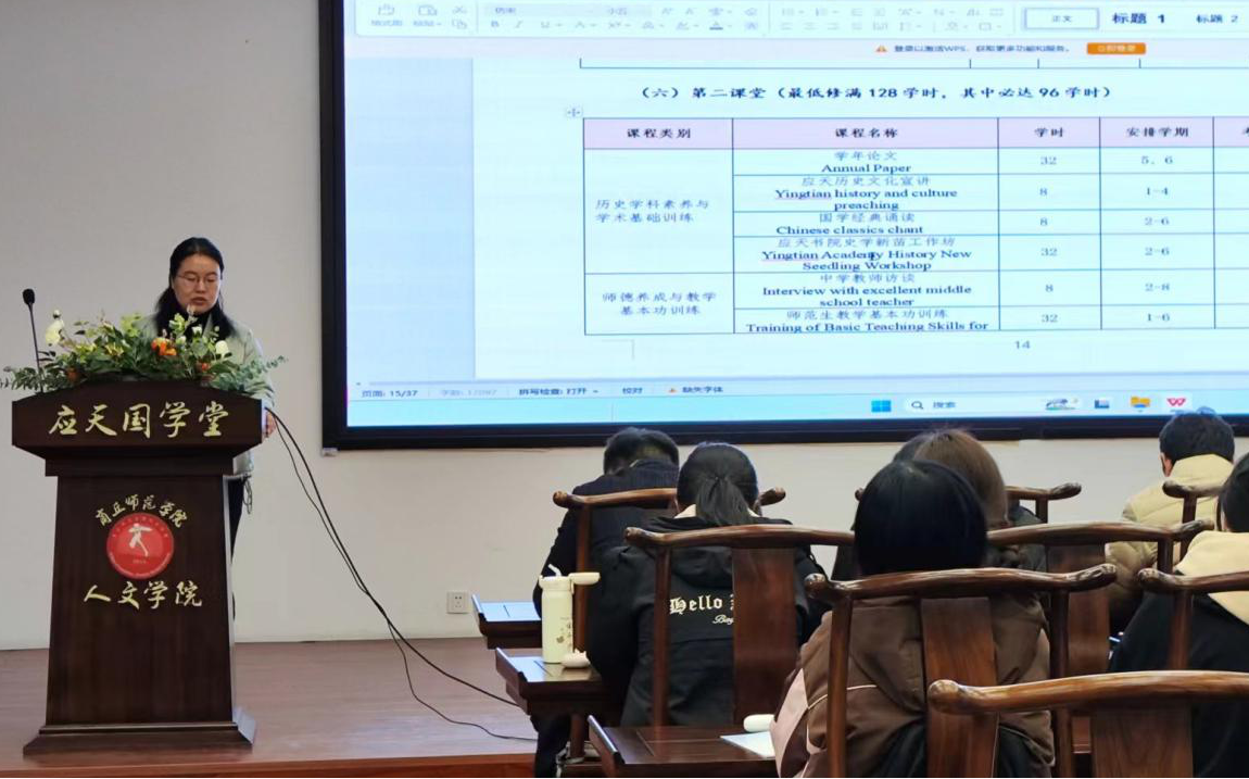 最后,薛立芳指出:第二课堂活动的实施的确会给同学们带来不小的压力,但是希望同学们不惧困难,迎难而上,追求卓越,正如《逸周书》中所言:“不难不费而致大功,古今未有。”相信同学们经过第二课堂活动的锻炼,将会更有效地达成师范生培养目标,进而成为政治立场坚定、教育情怀浓厚、史学功底扎实、人文素养深厚、教育理念先进、教学本领过硬、坚持终身学习与可持续发展的中学历史骨干教师。