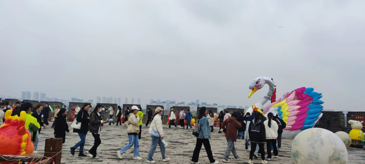 同学们登上商丘古城南门,观古城全貌,通过研学导师的讲解,了解古城的历史、文化和建筑结构,为其悠久、深厚、独特的魅力而感叹。眺望古城南湖,碧波荡漾的湖面上有成群的野鸭、白鹭等鸟类,生态环境的优美令人心旷神怡。通过在城墙上的互动游戏,同学们增强了团队精神和合作意识。