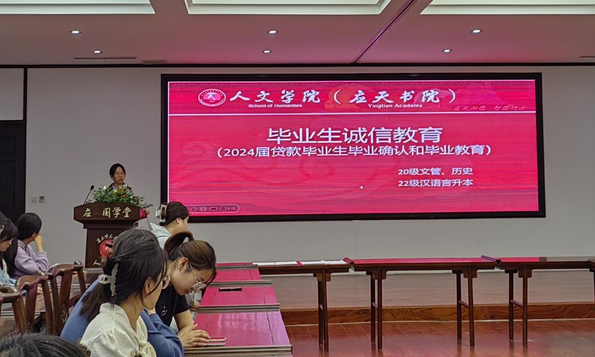 为切实加强国家助学贷款贷后管理工作,增强贷款毕业生诚信责任意识,4月25日下午,Beat365官方网站在国学堂召开2024届贷款毕业生诚信还款毕业教育会,2024届历史学、文化产业管理以及汉语言专升本贷款毕业生参会,会议由毕业生辅导员崔方楚主持。