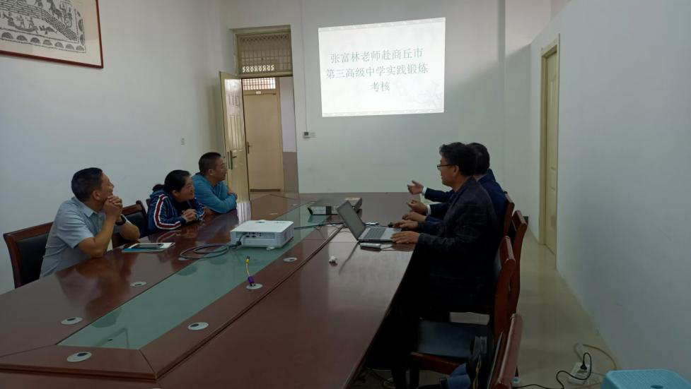 随后,张富林重点围绕在商丘市第三高级中学实践锻炼期间的具体任务、作出的实质性与建议性工作、个人教学和科研能力提升成效等方面进行详细介绍。